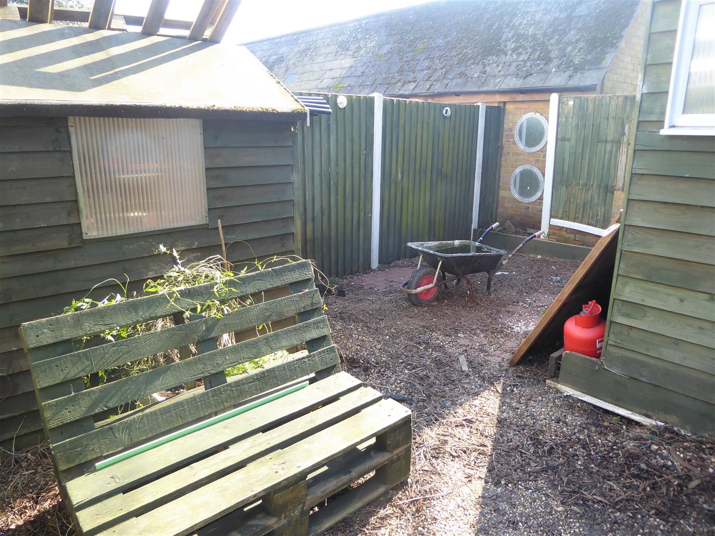 Rear - Timber shed, raised borders.