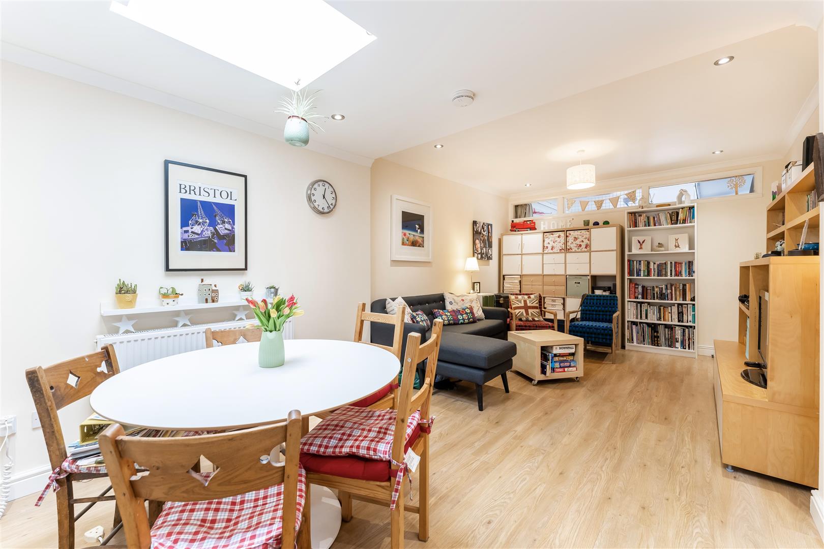 Dining Area - Radiator, power point, laminate flooring, spotlights.