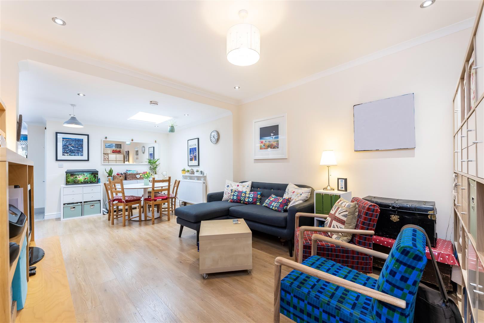 Reception/Diner - Laminate flooring, power point, radiator, spotlights, through to...