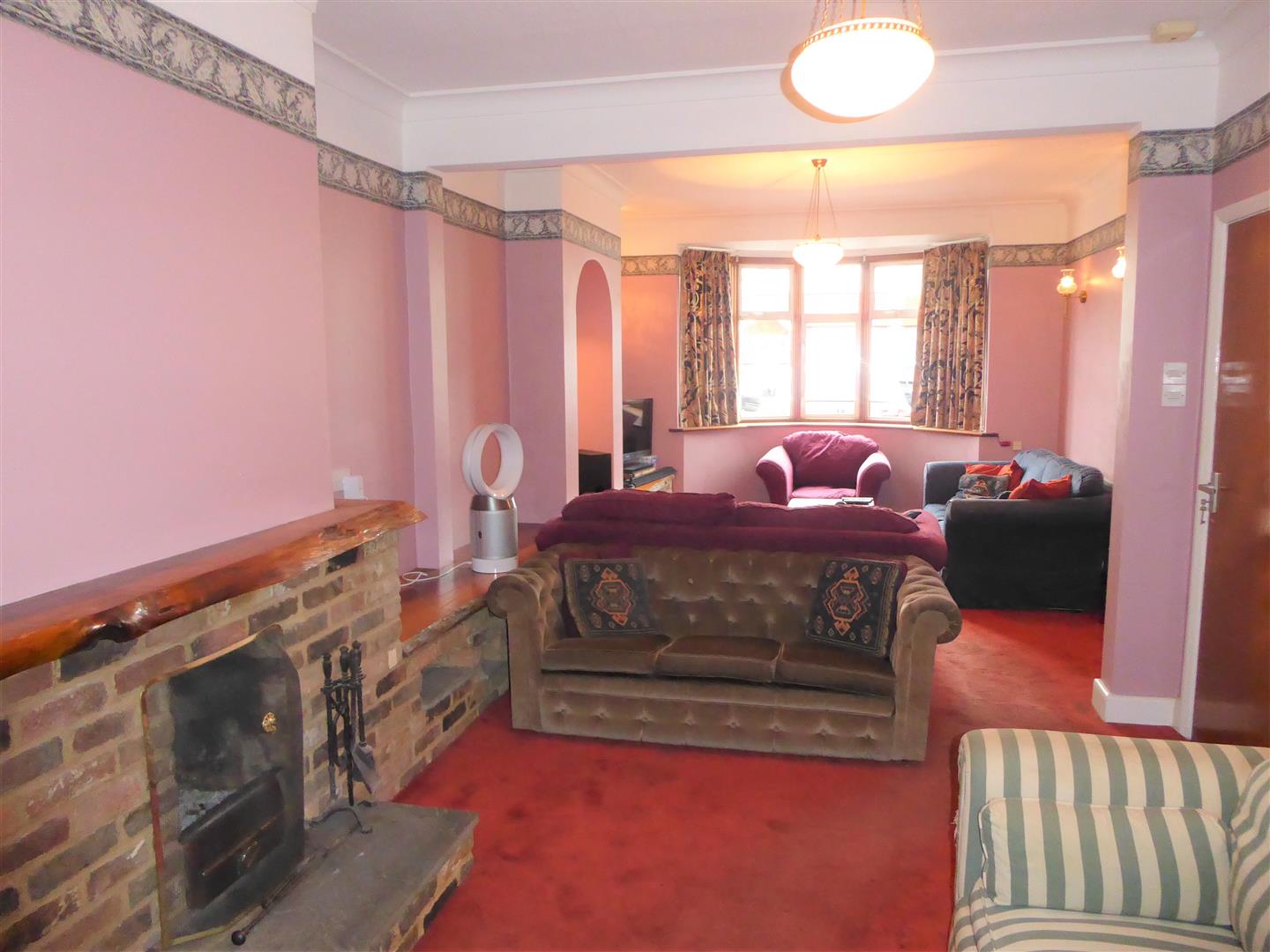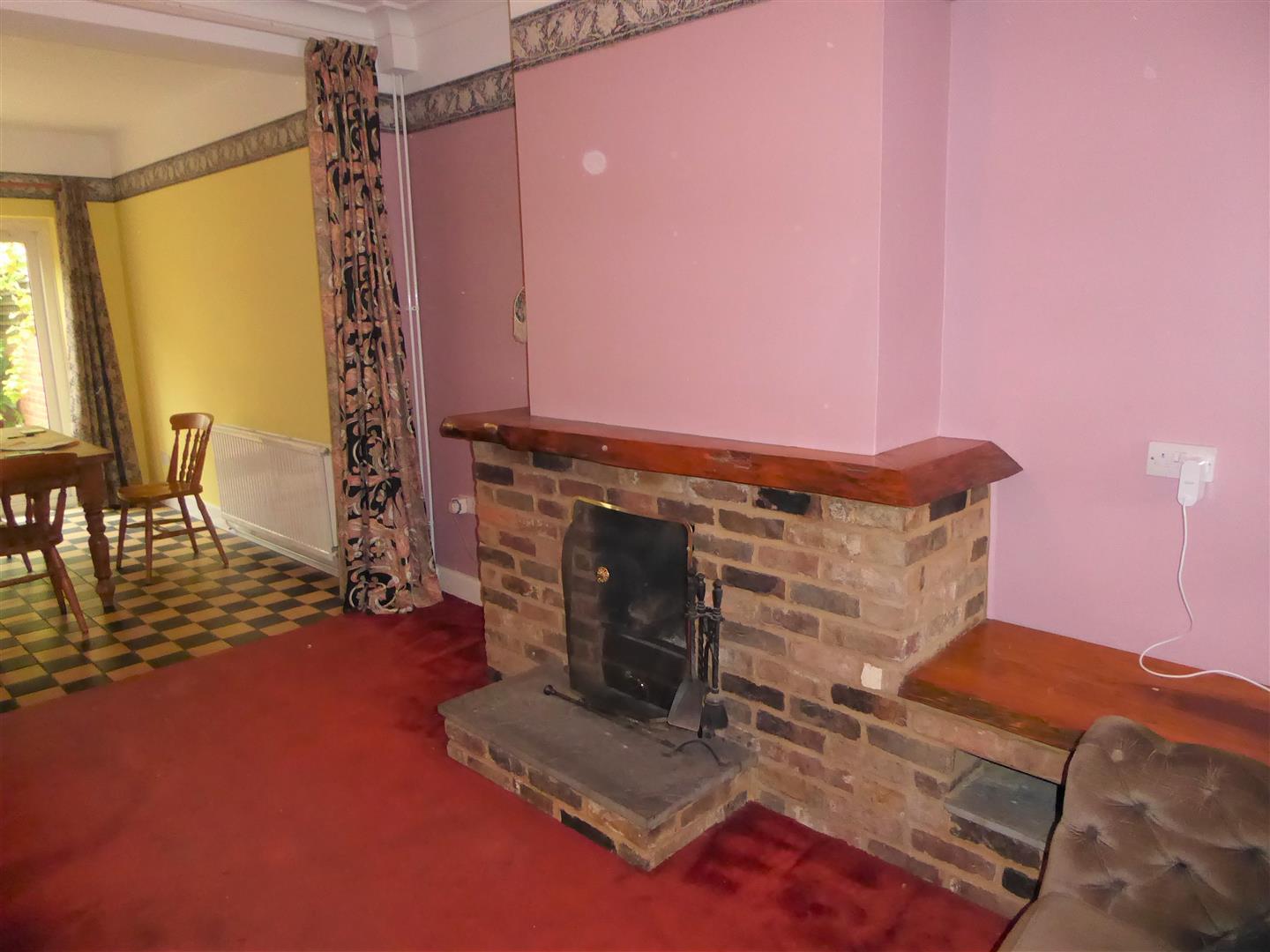 Through Lounge - Front aspect doube glazed window, radiator, further radiator, feature brick surround fireplace, power point, through to...