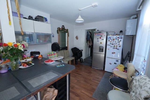 Kitchen - 7.54m x 3.25m (24'9 x 10'8) - Single drainer sink unit with mixer tap and cupboard below, further wall and floor mounted units, gas hob, electric oven with overhead extractor hood space for washing machine, varnished wood flooring, part tiled walls, power points, wall mounted combination boiler, radiator, breakfast bar, larder cupboard, laminate flooring to dining area, double glazed rear aspect window, door to rear garden.