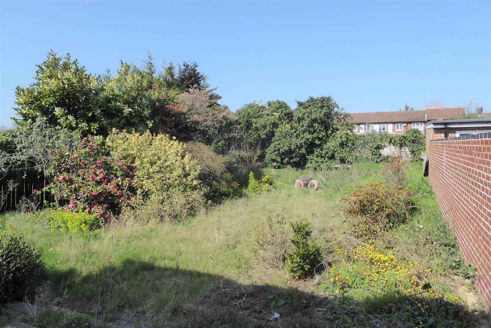 Front Garden - Path to door, flower beds, scope to provide off street parking.