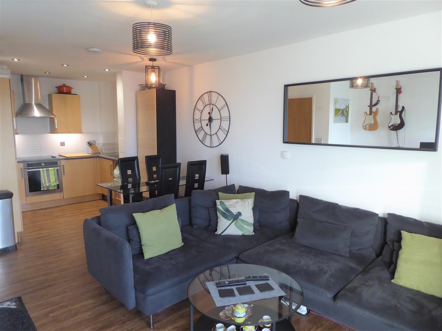 Open Plan Lounge/Kitchen - Double glazed window and door to private balcony, laminate flooring, power point.