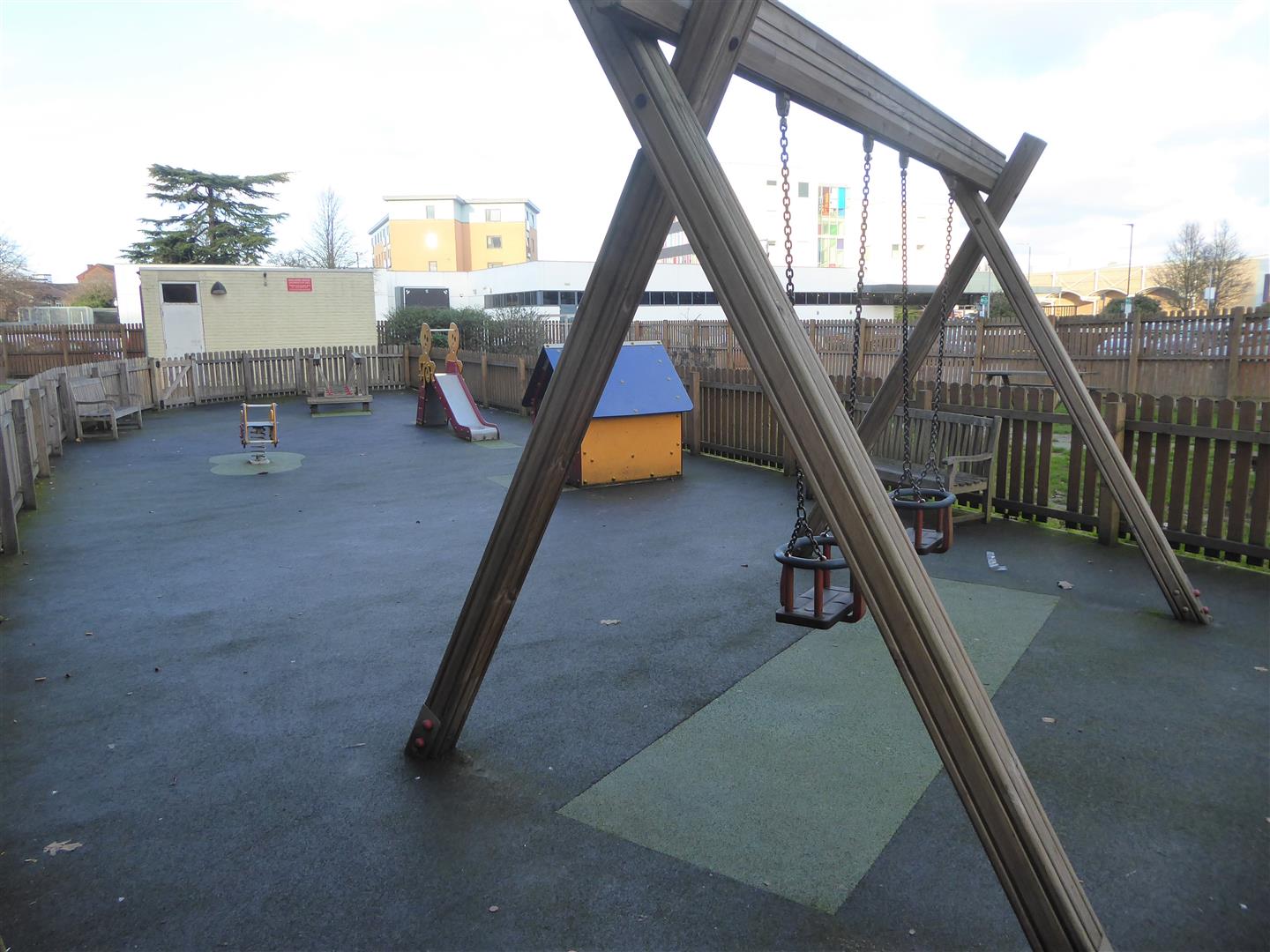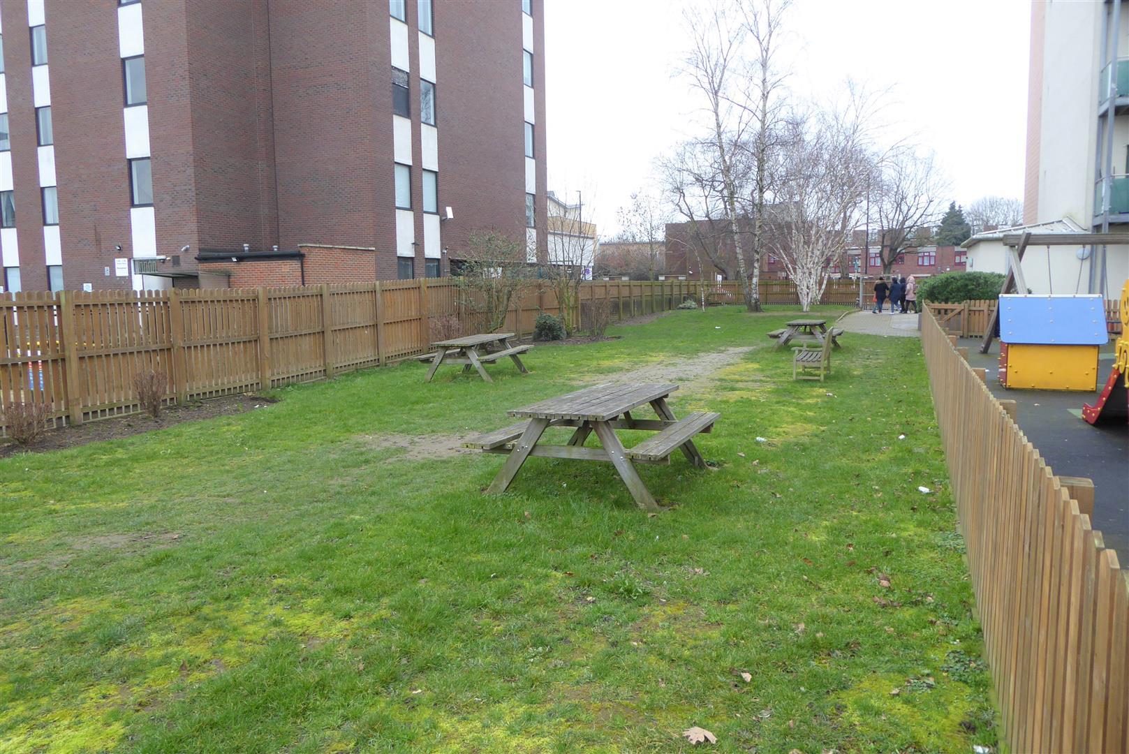 Outside - Communal gardens, playground area and undercover parking.