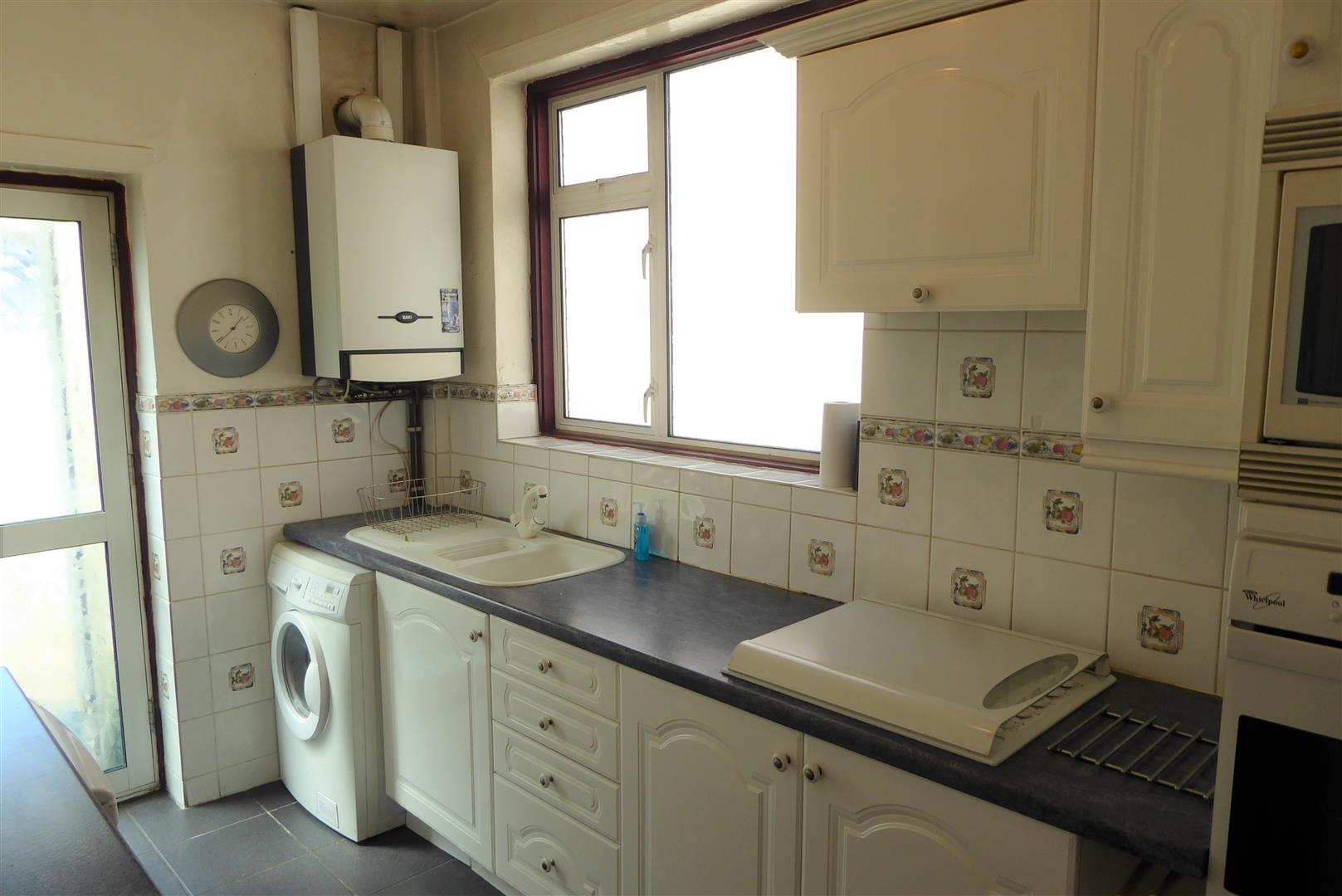 Kitchen - 1 1/2 bowl single drainer sink unit with mixer tap and cupboard below, further wall and floor mounted units, built-in hob and oven, part tiled walls, tiled flooring, space for washing machine and fridge, wall mounted boiler, side aspect double glazed window, double glazed door to conservatory.