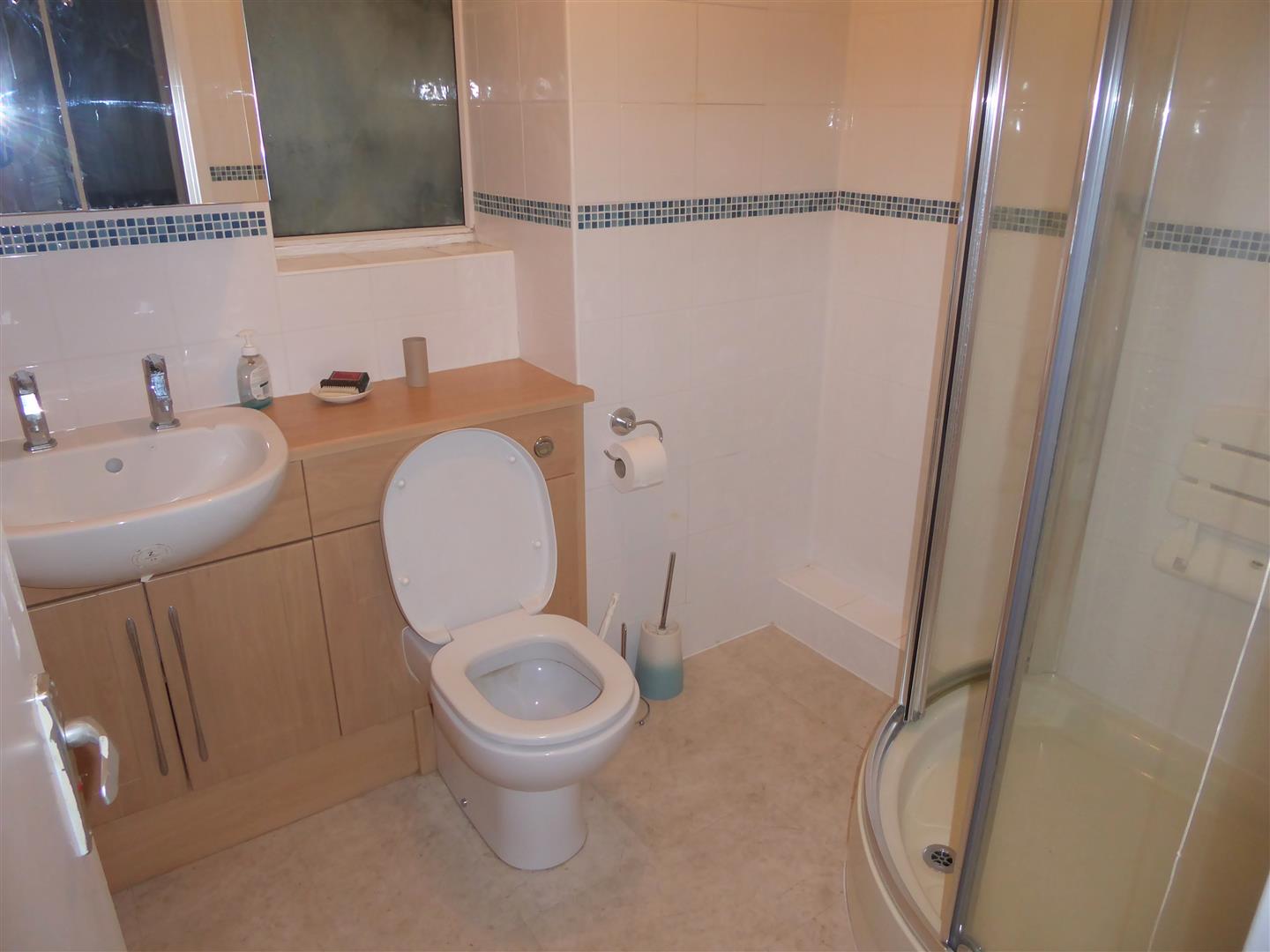 Shower Room - Tiled enclosed shower cubicle with wall mounted shower unit, wash hand basin with vanity unit below, low level w/c, heated towel rail.