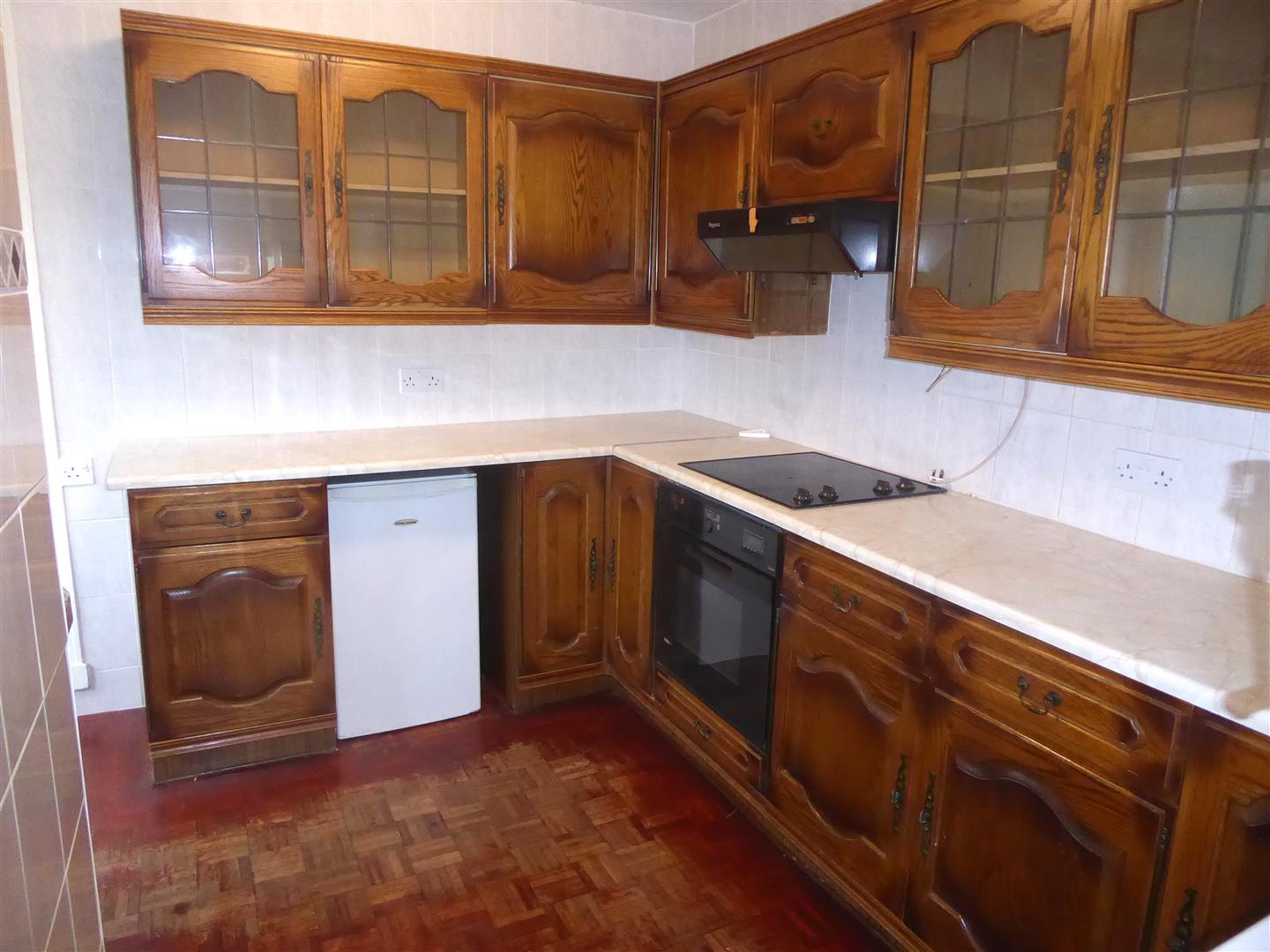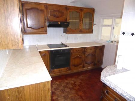 Kitchen - 1 1/2 bowl single drainer sink unit with mixer tap and cupboard below, built-in hob and oven, further wall and floor mounted units, double glazed window and door to garden, door to...