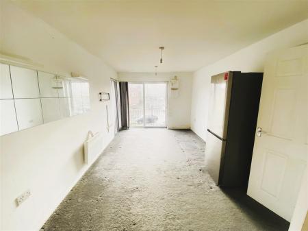 Open Plan Lounge - Double glazed sliding door to l'shaped balcony, electric heater, power point, through to...