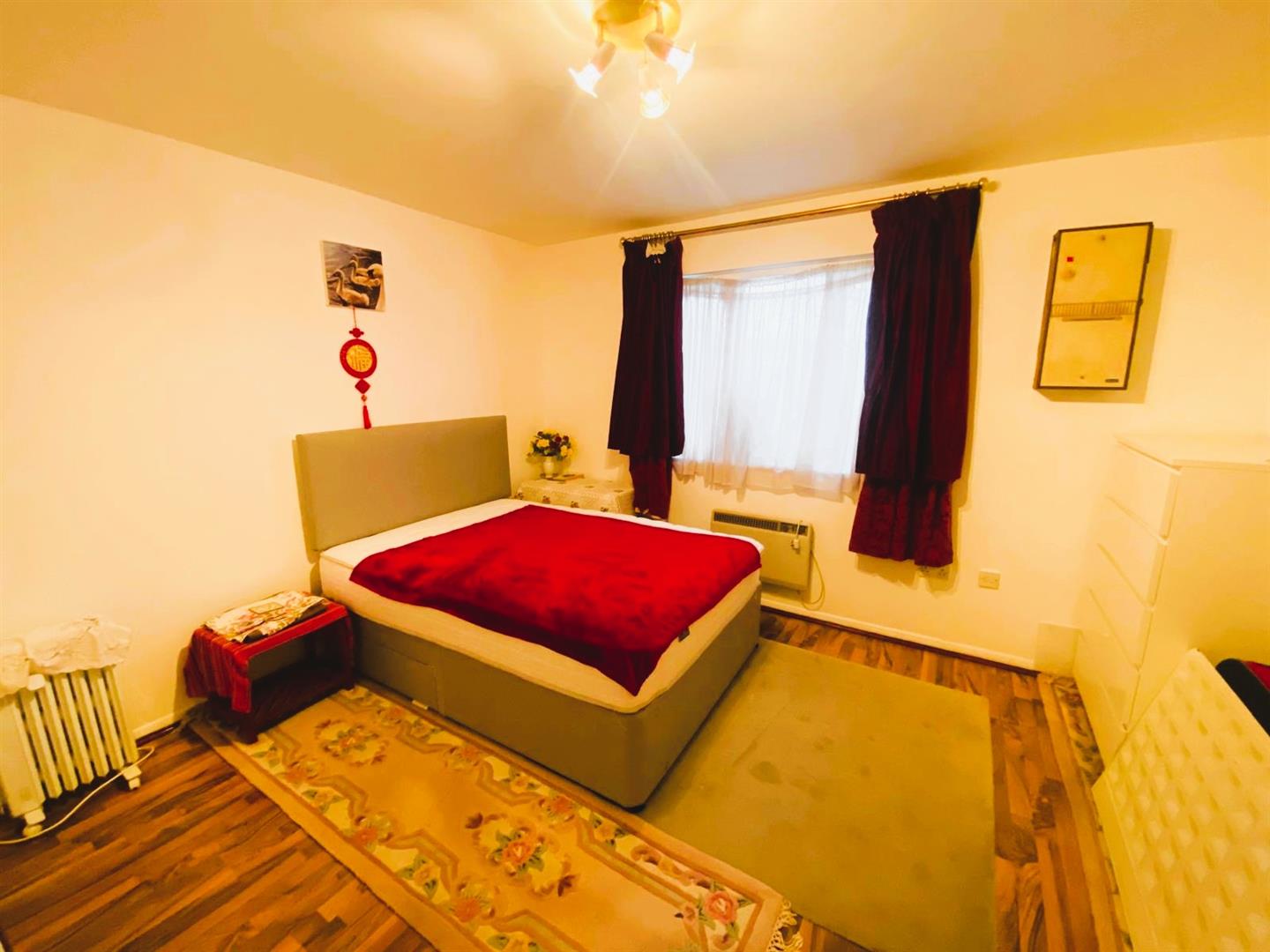 Bedroom - Front aspect double and secondary glazed window, laminate flooring, electric heater, built-in wardrobe.