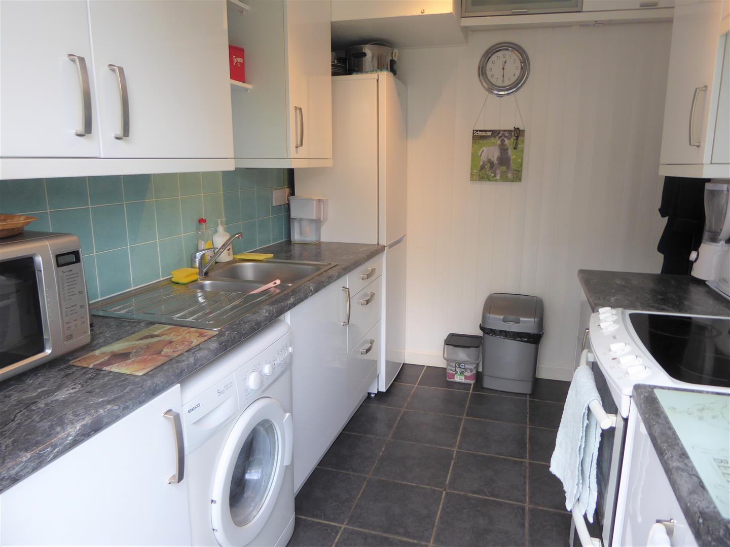 Re-Fitted Kitchen - 1 1/2 bowl single drainer stainless steel sink unit with mixer tap and cupboard below, further wall and floor mounted units, cooker, space for washing machine and fridge/freezer, tiled walls and flooring, rear aspect double glazed window and door to garden.