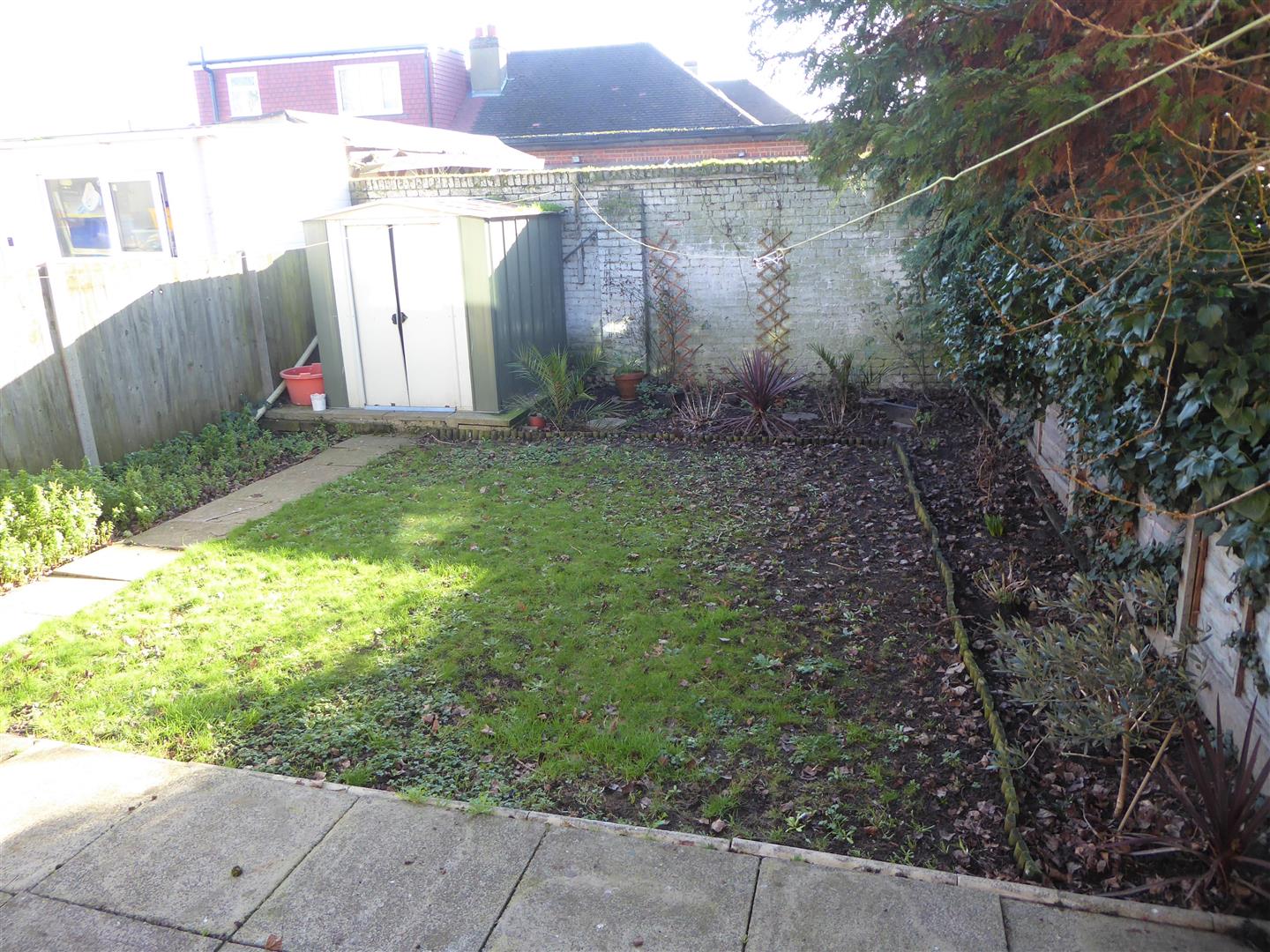 Rear Garden - Paved patio area, rest laid to lawn area with shed.