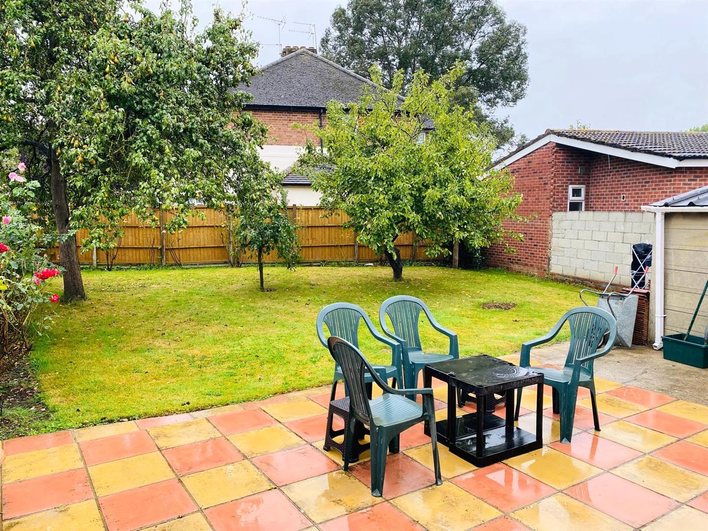 - Front and rear gardens and detached garage