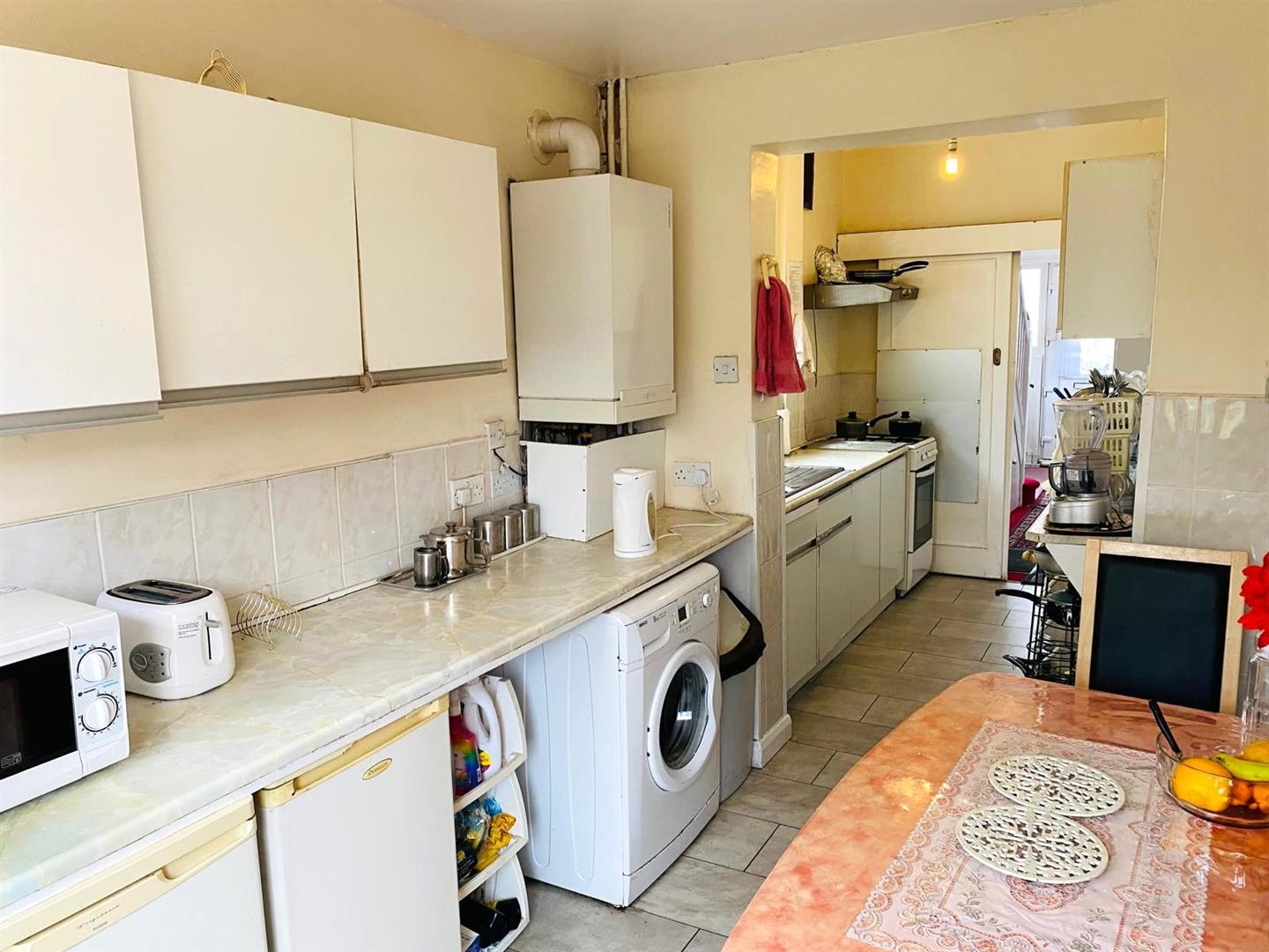 - Through lounge, dining room (bedroom four) and kitchen