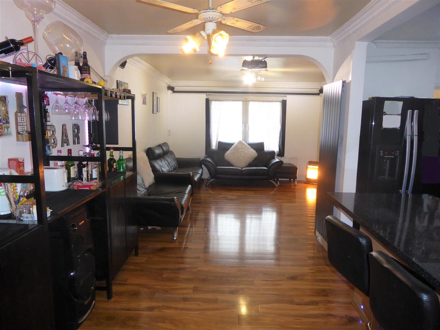 Through Lounge - Front aspect double glazed window, power point, laminate flooring, radiator, double opening doors to garden. Through to...