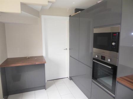 Modern Re-Fitted Kitchen - Single drainer stainless steel sink unit with mixer tap and cupboard below, further wall and floor mounted units, built-in hob and extractor above, built-in oven and microwave, tiled flooring, rear aspect double glazed window, door to garden.