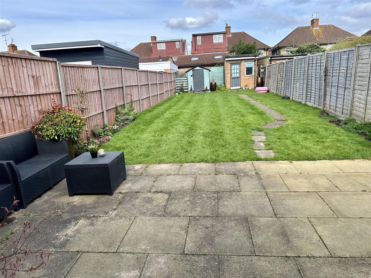Externally, there is a driveway parking to the front of the property and a good sized (75ft) rear garden with a paved sun terrace spanning the entire width of the house (ideal for 'Alfresco dining and relaxation), range of plants and shrubs and the rest of the garden laid to lawn. The property benefits of having side access via the side wooden gate with a path leading to the brick built out building.