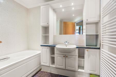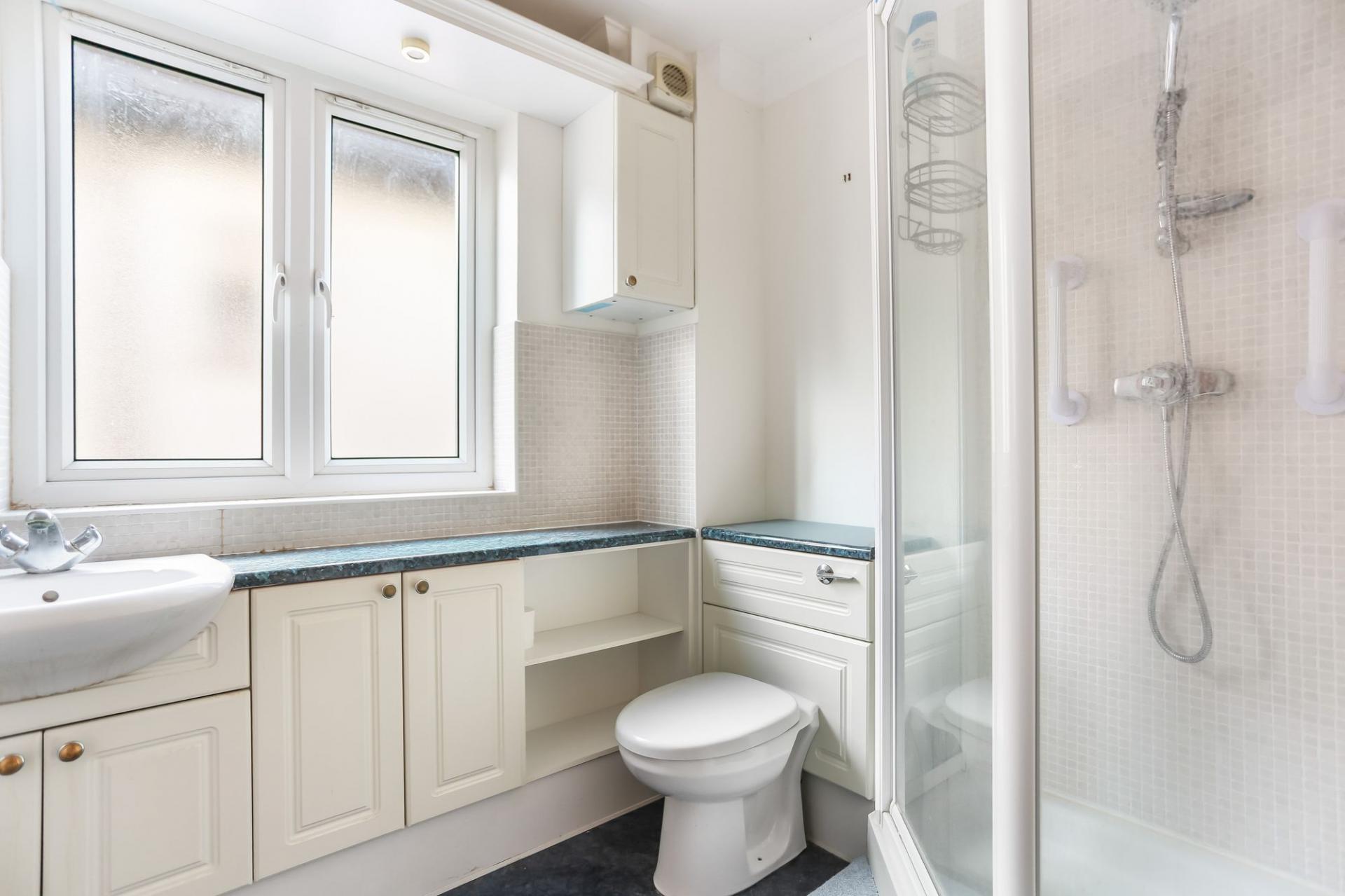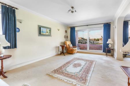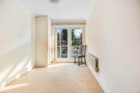 Both bedrooms are located to the front of the property and enjoy direct access to a delightful private balcony. The principal suite includes a dressing room, an ensuite shower room, and extensive built-in wardrobes, while the second bedroom also benefits from fitted storage. A further bathroom with a classic white suite completes the accommodation.