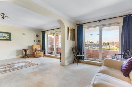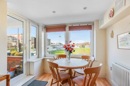 Decorated in elegant neutral cream tones, the home exudes sophistication from the moment you enter the large and welcoming hallway. The spacious lounge and dining area features sliding glass doors that bring the excitement of the cricket ground directly into your home, creating a striking wow factor and undoubtedly the best seats in the house. The separate wooden-fitted kitchen/breakfast room flows seamlessly onto a balcony, providing a perfect space to enjoy the stunning views in comfort.