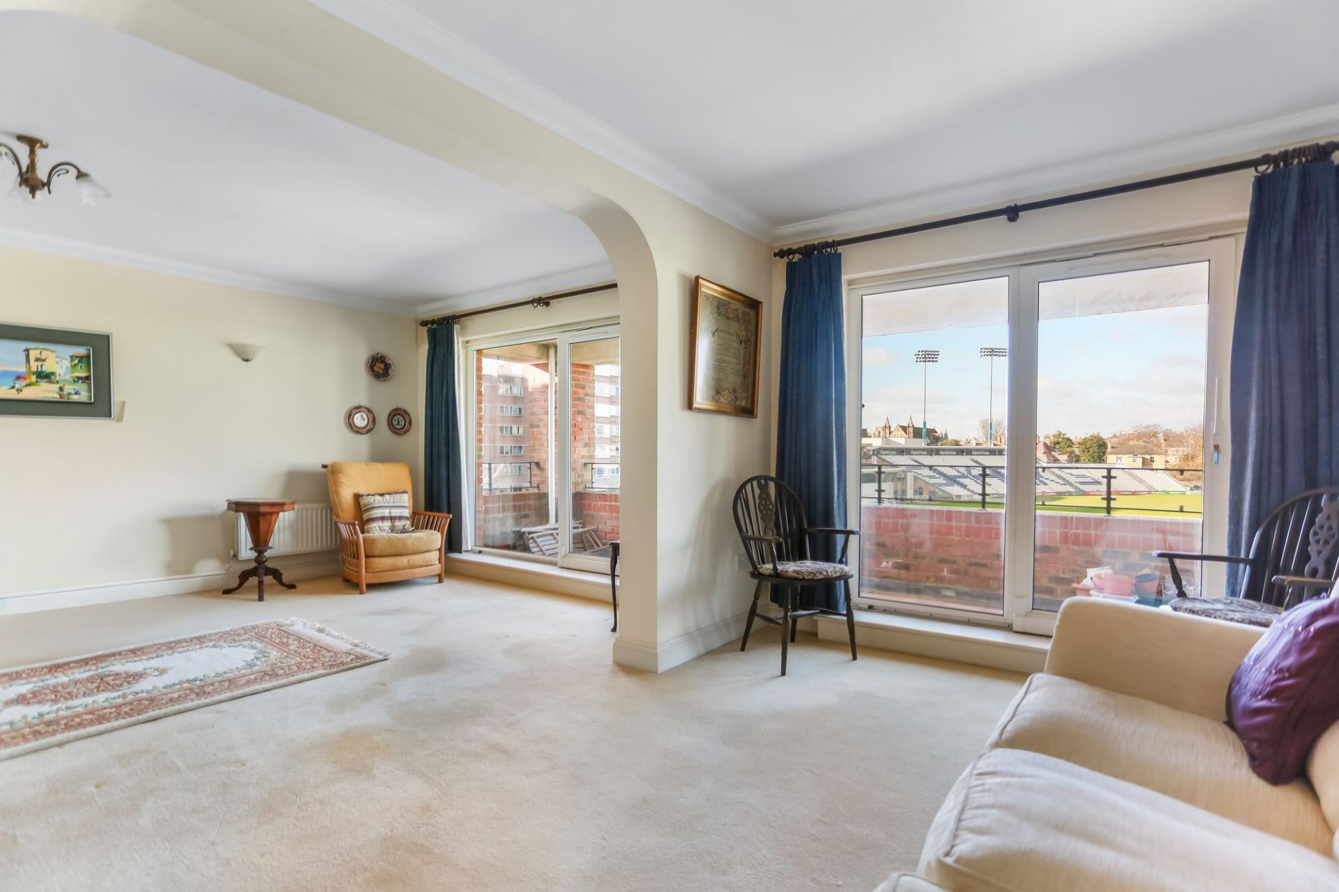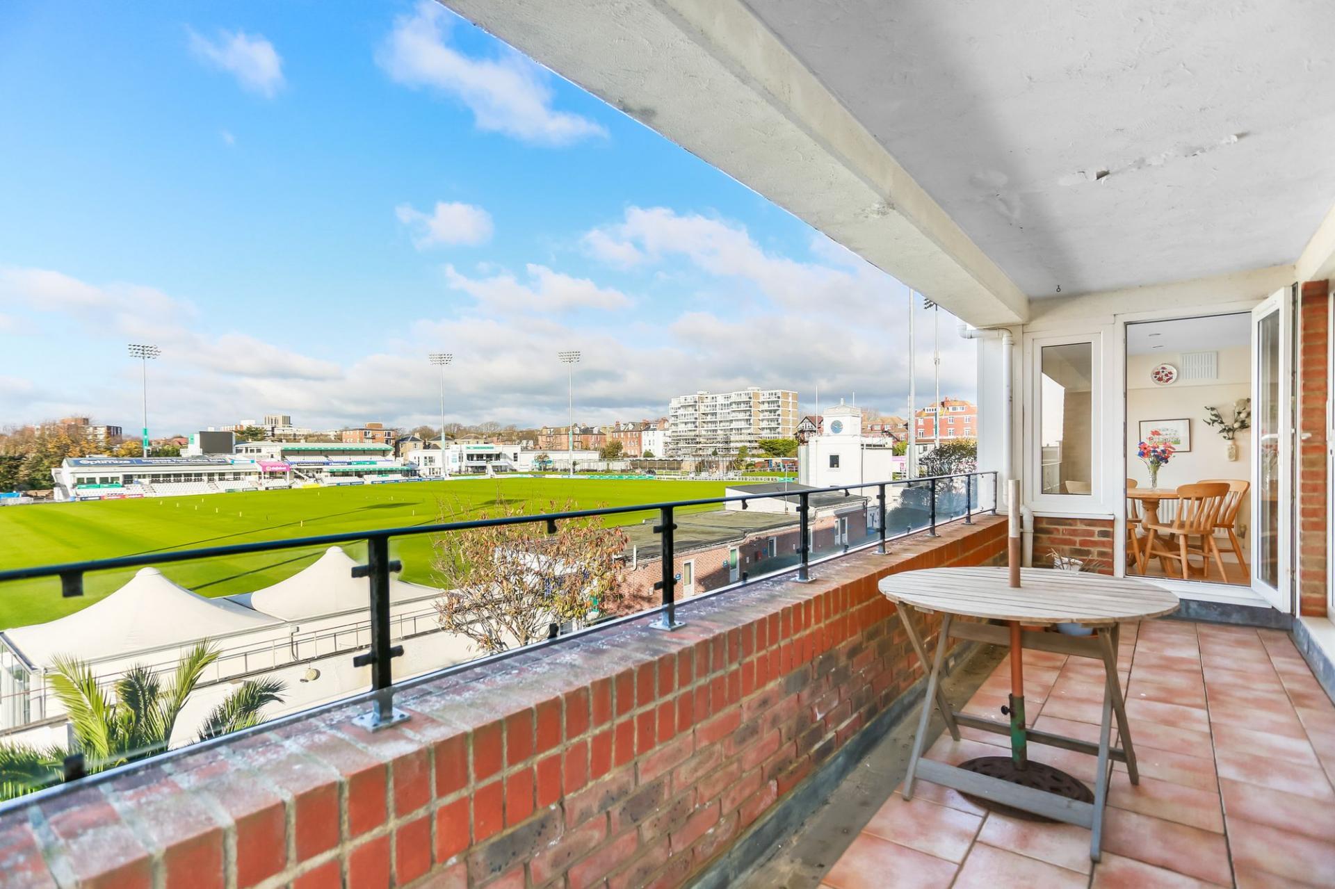 Its elevated position allows the apartment to enjoy panoramic vistas of the Sussex County Cricket Ground from the balcony, which extends almost the full length of the home, maximising the incredible outlook. Additional features include secure underground garage parking and a small, well-maintained communal garden for residents.