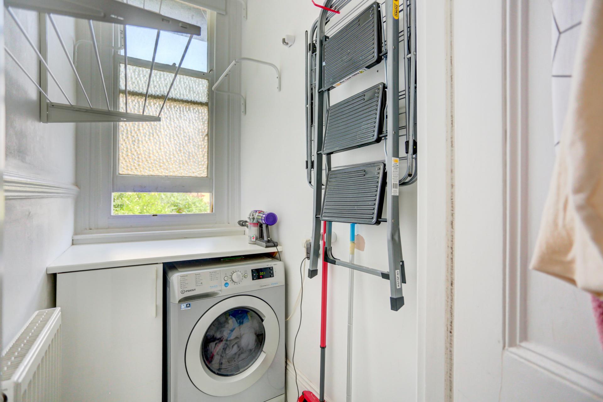 The property comprises a large west-facing living room with enough space for a dining table, a separate fitted kitchen with plenty of wall mounted and under counter cupboards, together with a separate utility room. Two generously-sized double bedrooms both feature wonderful bay windows, original marble fireplaces and fitted wardrobes. A delightful home office or study leads onto the balcony by tall double doors. All rooms lead off an open central hallway adding to the spacious feel of this well-appointed home.