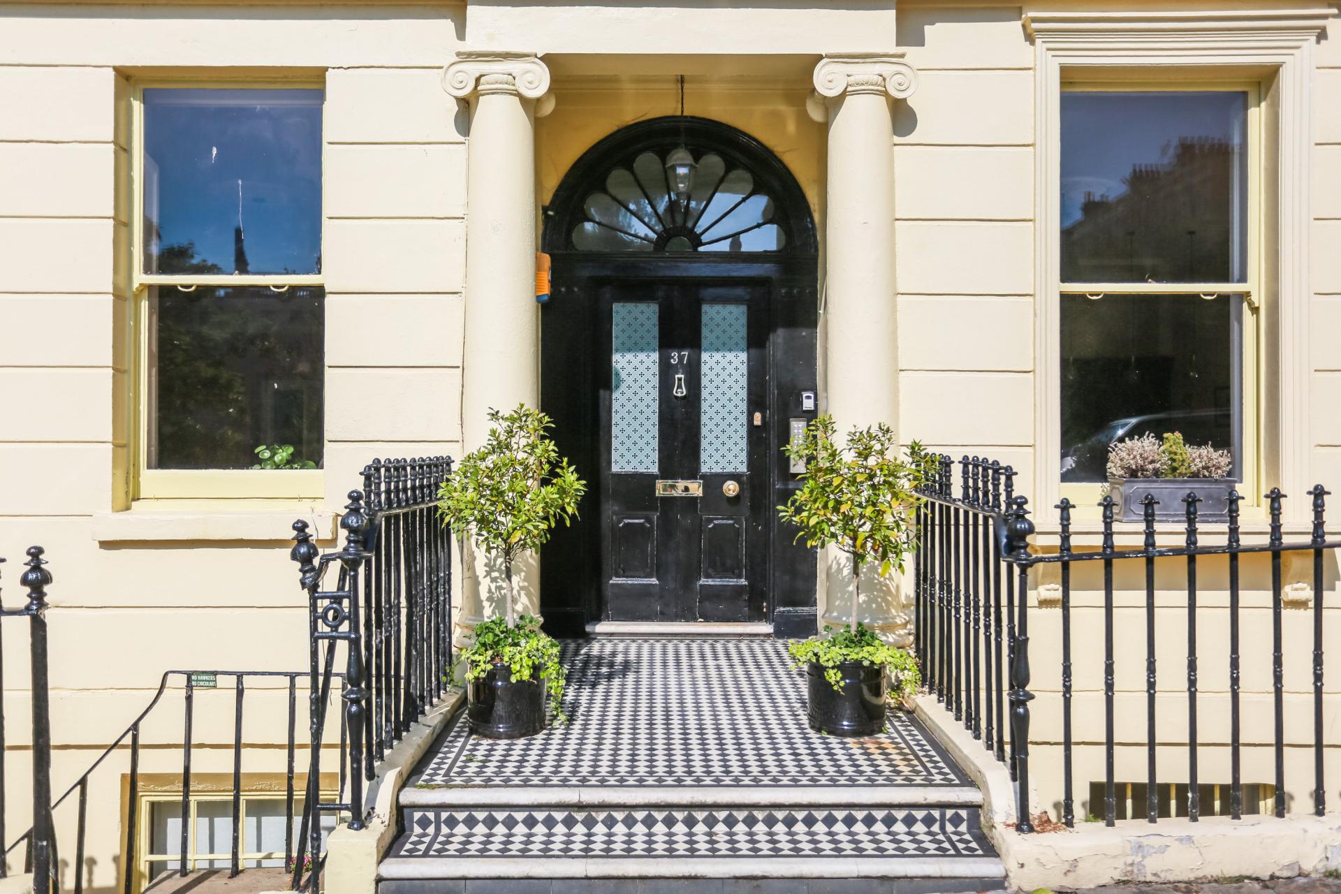 Stucco fronted and uniformly painted in rich warm cream, the properties on historic Brunswick Square are Grade 1 listed. They were designed by the renowned architect Charles Busby and built from 1825 onwards. Just up from Hove promenade the apartment sits on the northern end of the western terrace. This is a very well-presented home of over 565 square feet/52.5 square meters carefully updated to meet contemporary living.