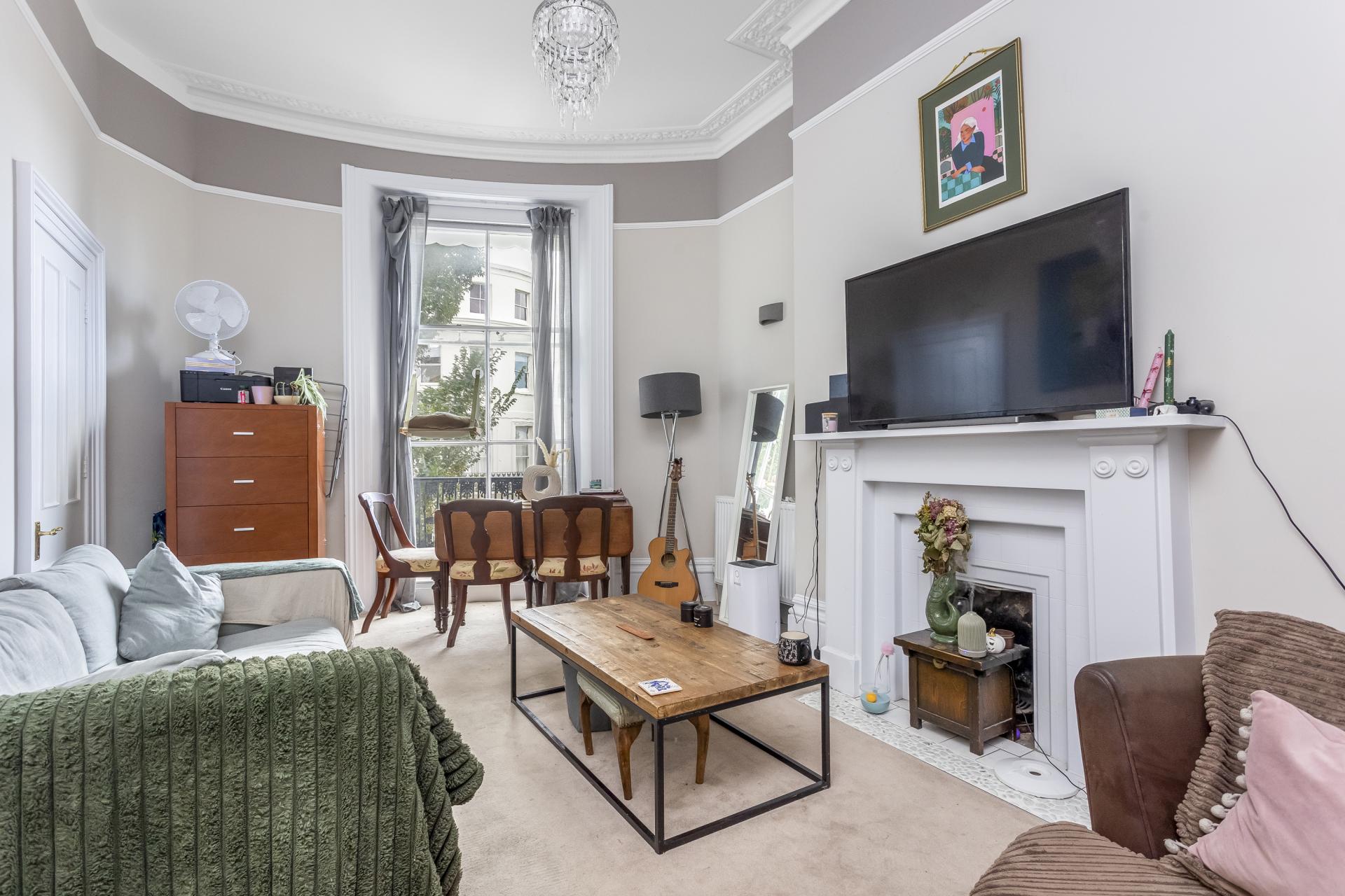 Set in a magnificent Grade II Listed period building with bay sash windows and cast iron balcony, this wonderful apartment boasts plenty of light and space.