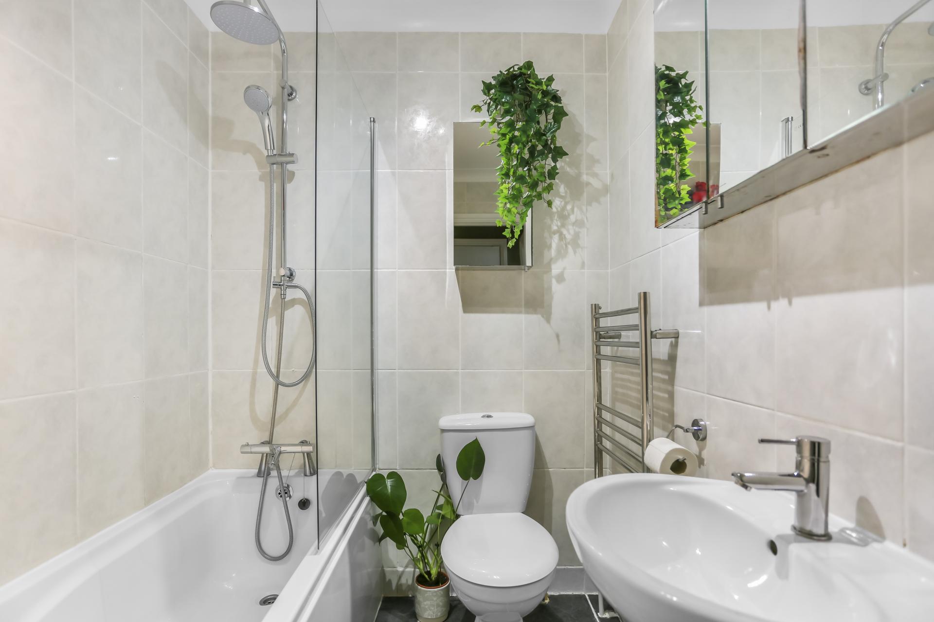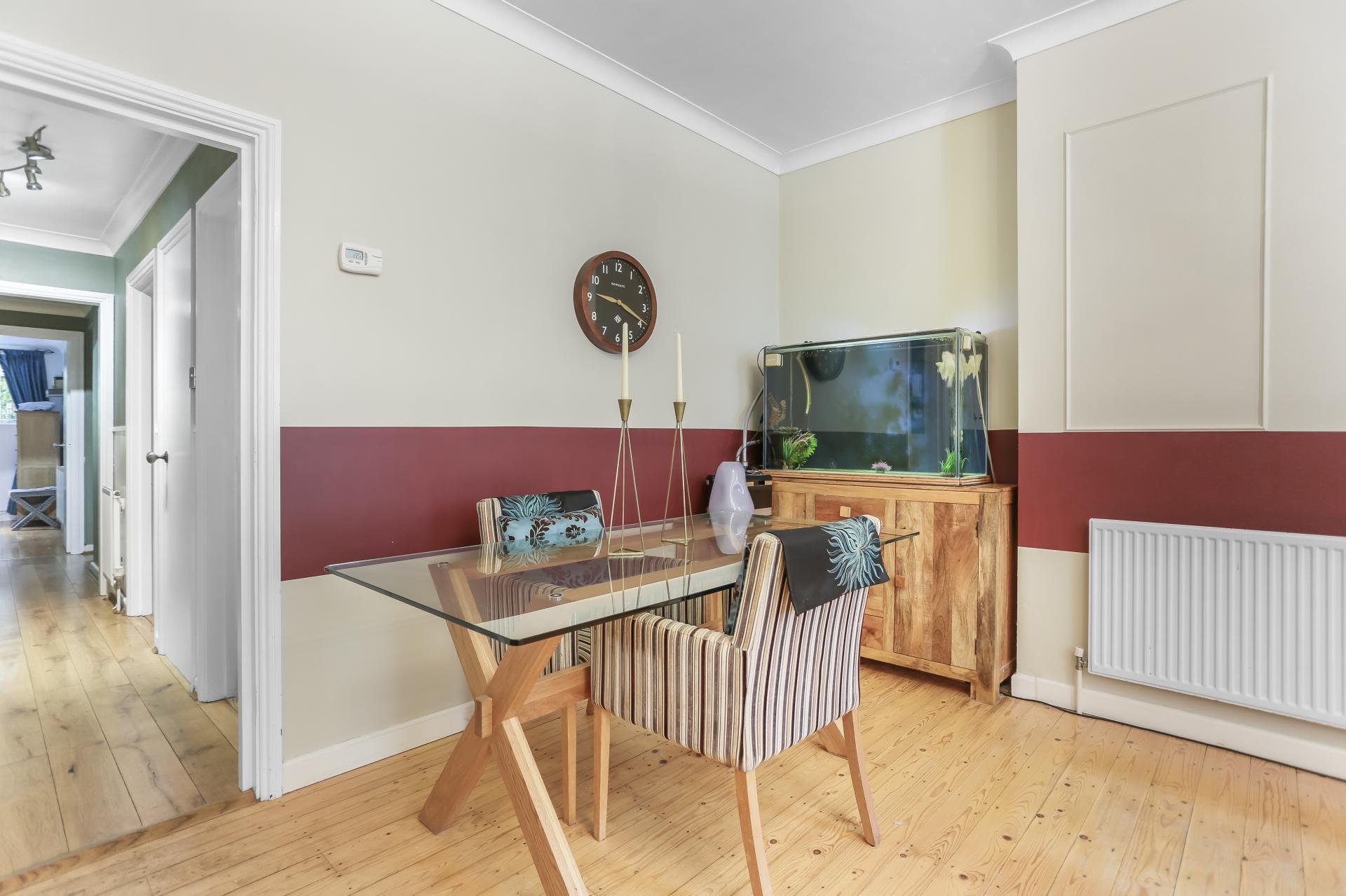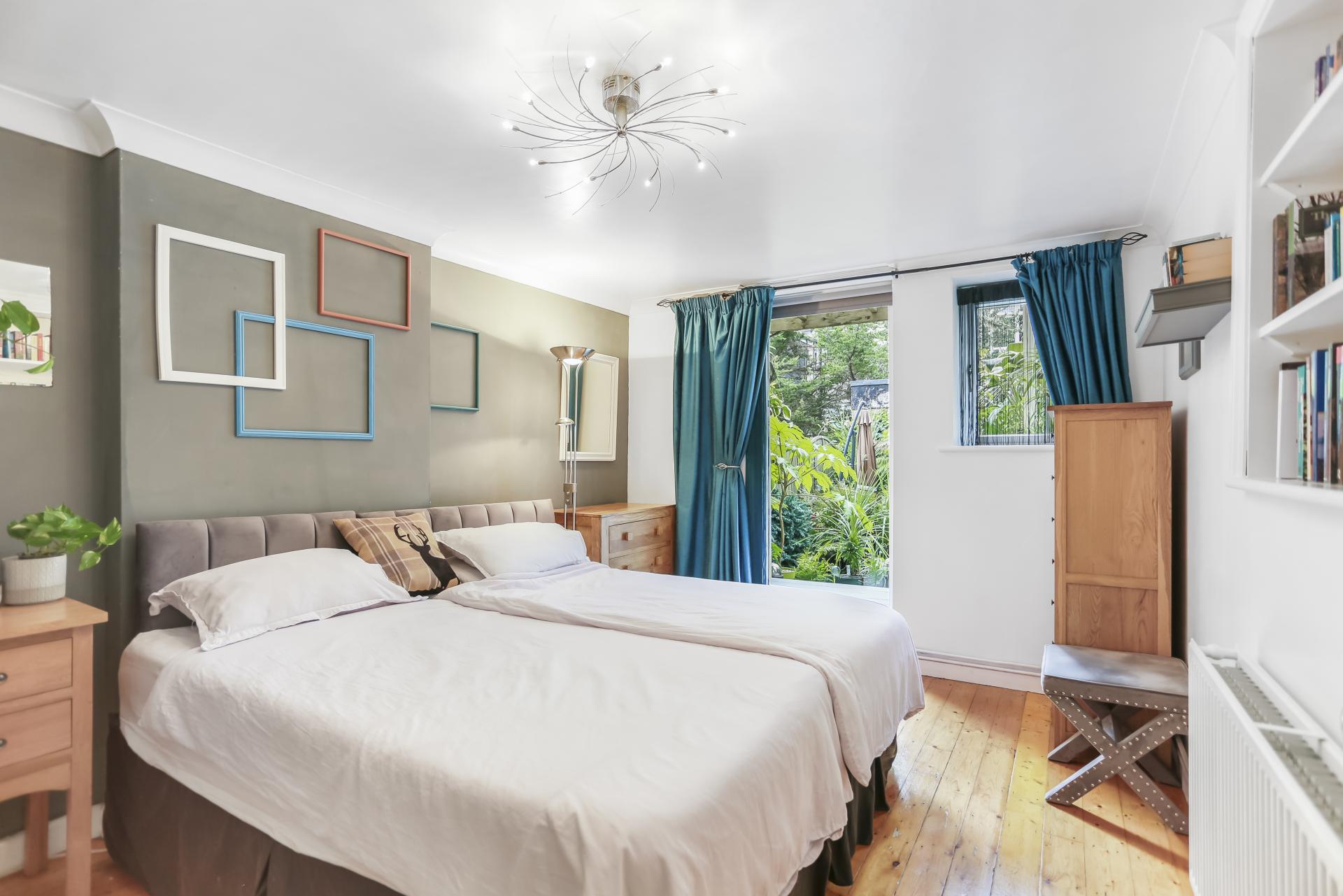 Set on the ground floor of a charming period townhouse, the property enjoys high ceilings, fantastic proportions and large windows throughout. The apartment features a generously-sized lounge and dining room towards the front, a separate fully-fitted modern kitchen, two double bedrooms and a white bathroom suite with shower over bath. A beautiful secret tropical garden is set to the rear, the space has an easy-to-maintain decking, a pond and has a preferred westerly aspect.