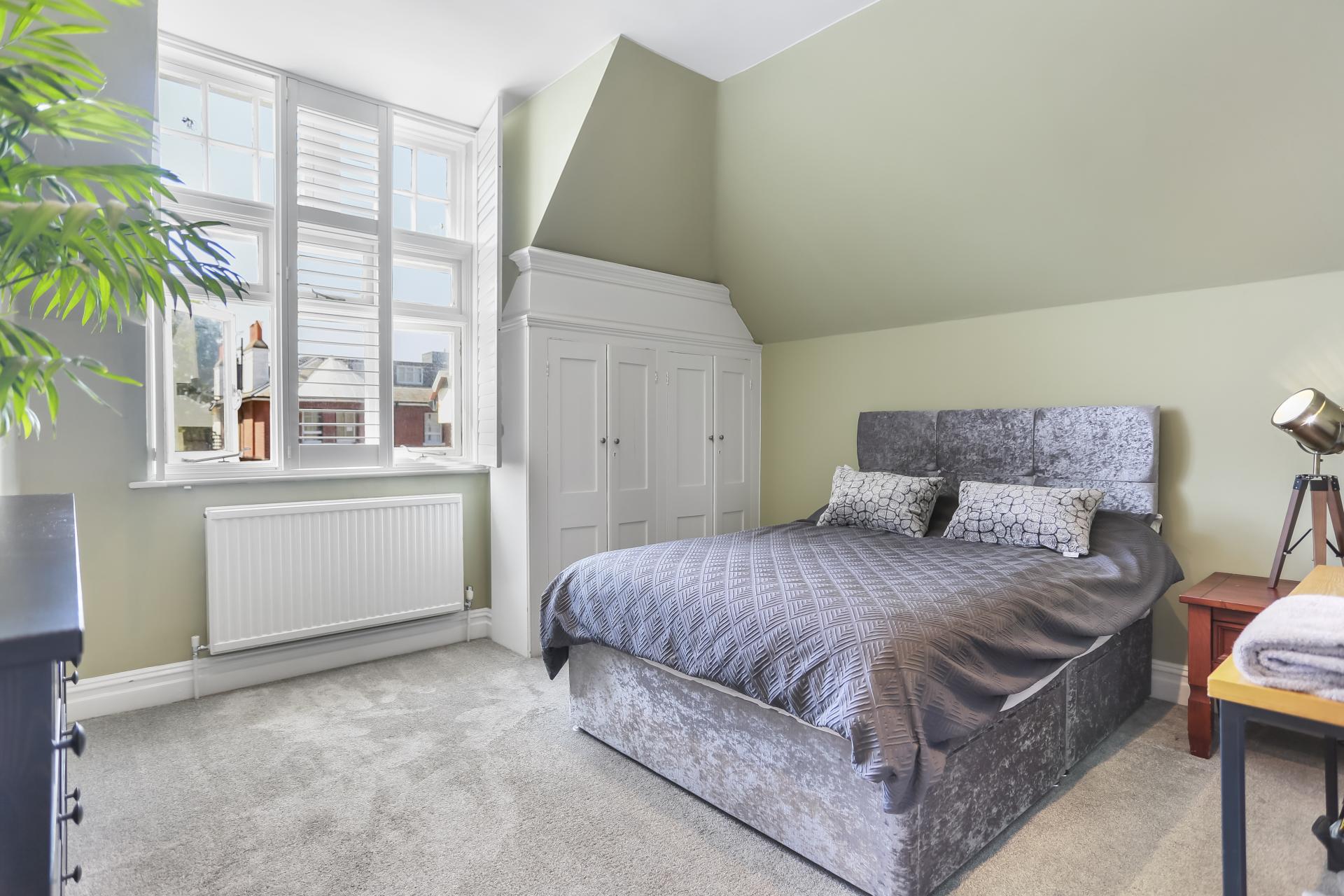 Sitting on the second floor of an attractive Victorian Villa, this beautiful home is a fantastic size measuring in excess of 1,050 sqft/almost 100sqm. The property features a selection of charming period details which includes an ornate fireplace, large sash windows and decorative picture rails. All rooms lead from a spacious hallway with a generously-sized west facing reception room situated to the front; the room benefits from a large sash window complete with bespoke shuttering and high ceilings. The separate kitchen sits at the rear offering a contemporary design and giving direct access outside. There are two well-proportioned double bedrooms, both having the added benefit of fitted wardrobe space, a contemporary bathroom with walk-in shower and a separate cloakroom.