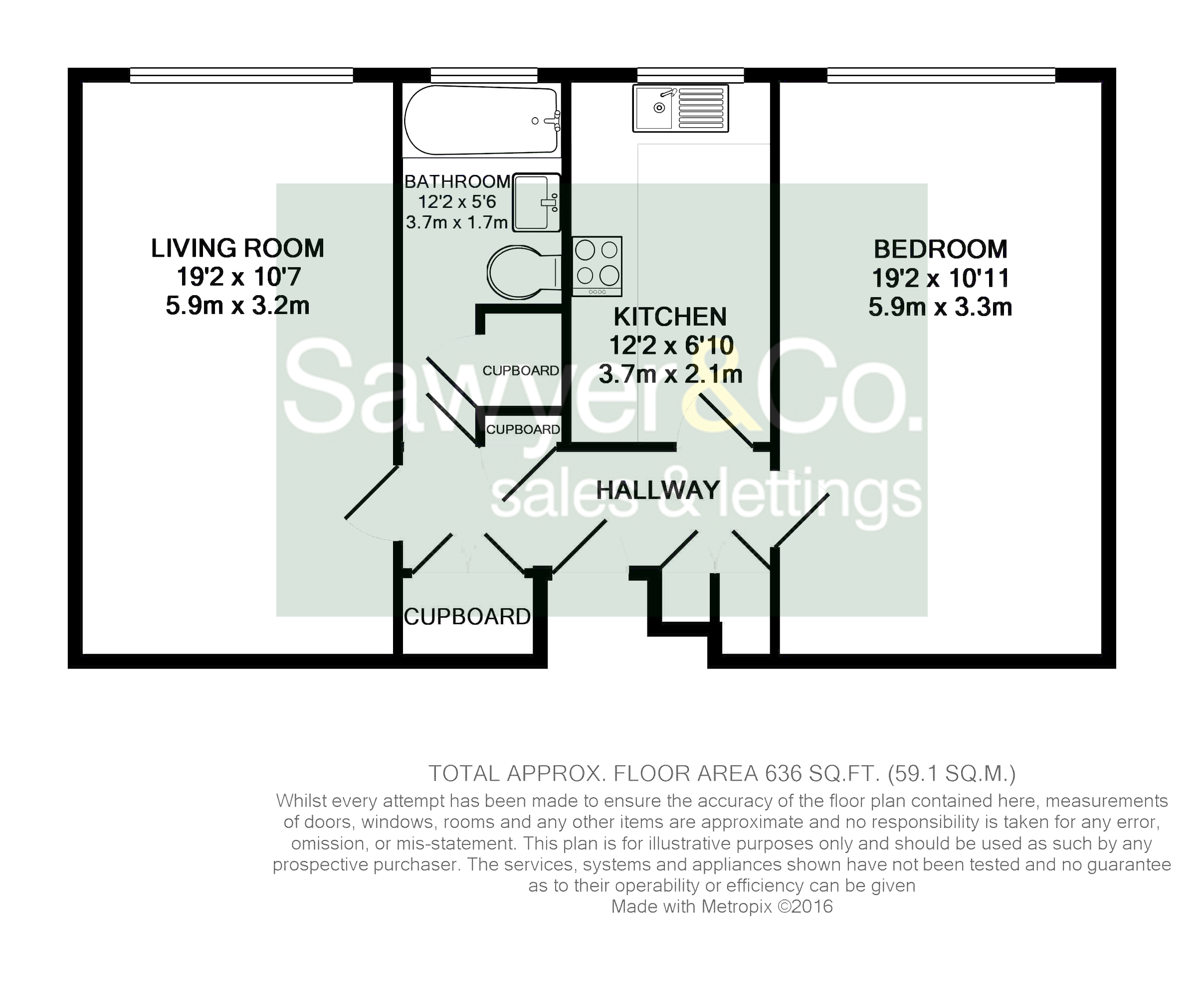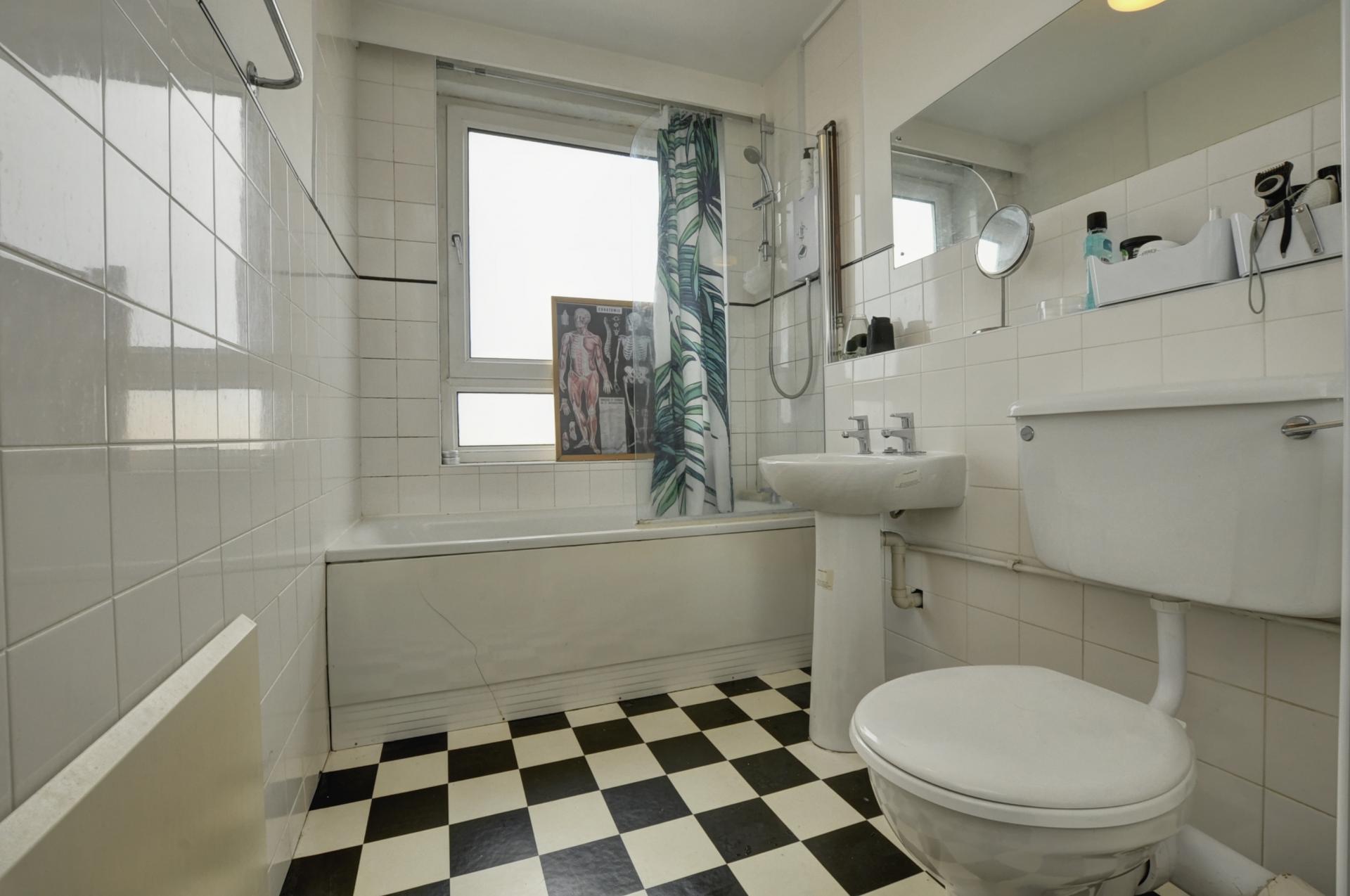 There is a generously proportioned double bedroom beautifully illuminated by wide-spanning windows, and a bathroom with a white suite with shower over bath. The property is equipped with electric heating and also has the advantage of multiple built in storage cupboards.