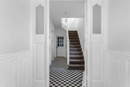 Upstairs, there are three well-proportioned bedrooms, one with a fitted wardrobe and another enhanced by a bay window, along with a contemporary family bathroom fitted with a shower over the bath.