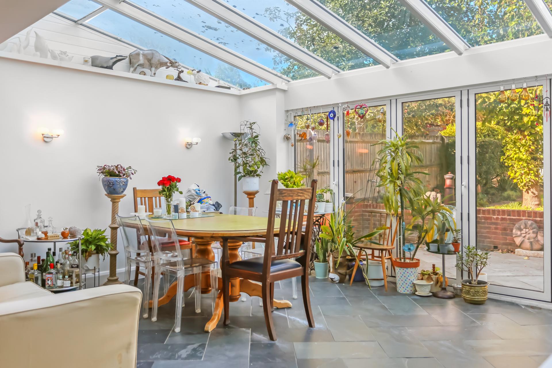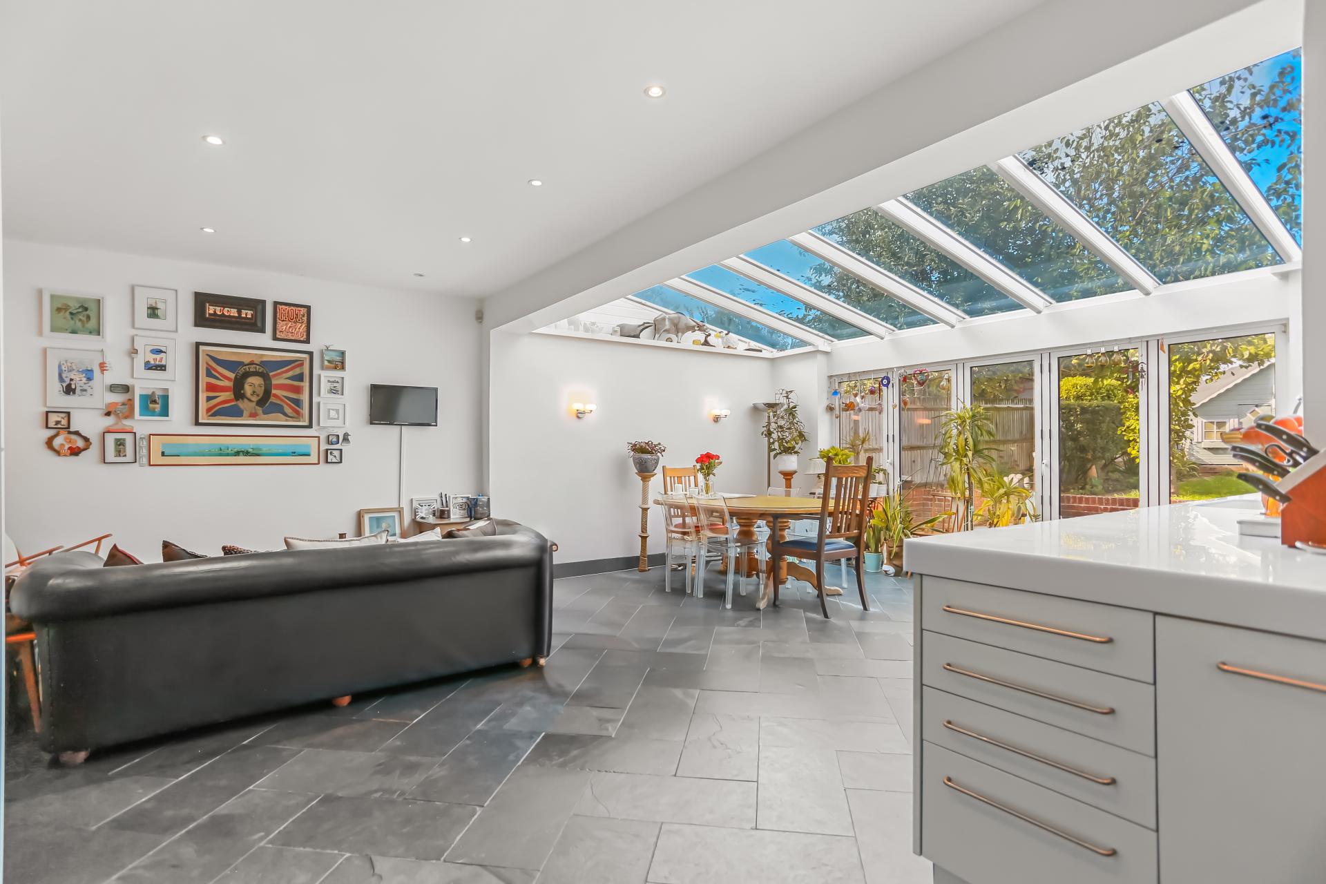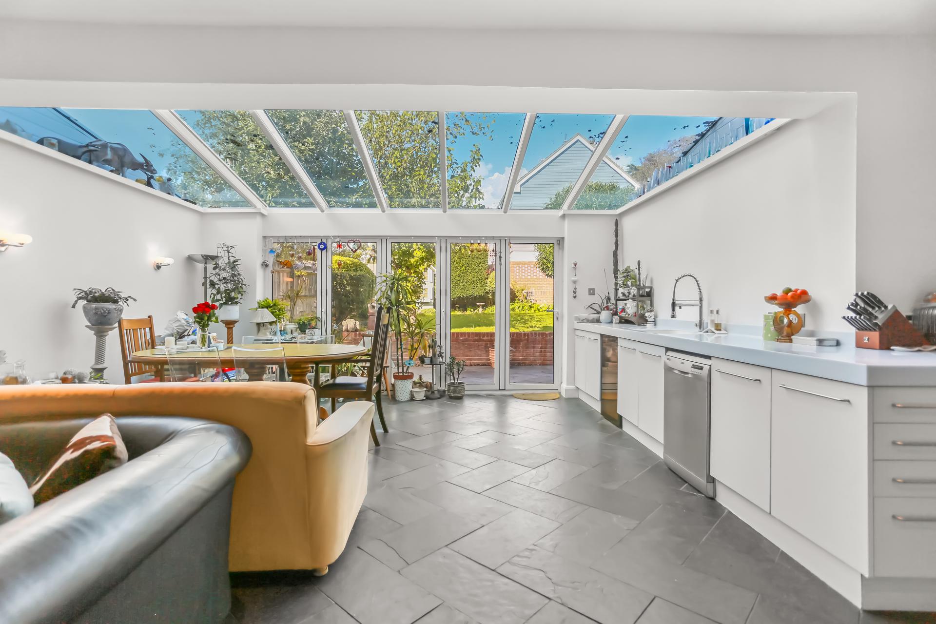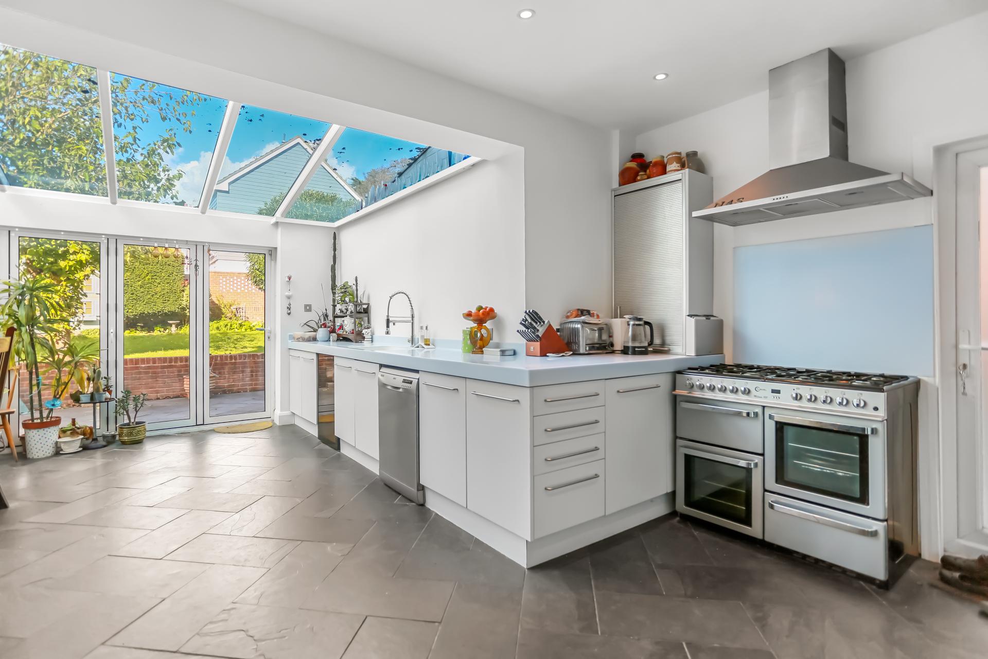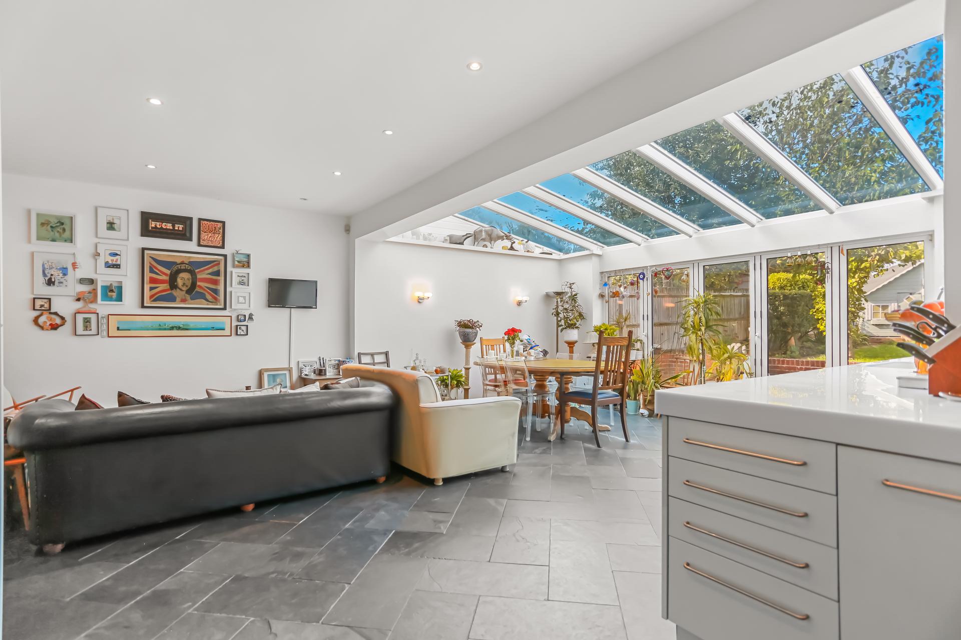 Very well positioned on a tree-lined road in the popular Hove Park area, this family home is classically arranged over three floors. The ground floor has been thoughtfully designed for modern family living. A large open-plan kitchen/diner with reception space is flooded with natural light thanks to the predominantly glass extension and flows out to the garden. A second reception room with a generous square bay window, along with a downstairs cloakroom, ensures plenty of living space on the ground floor.