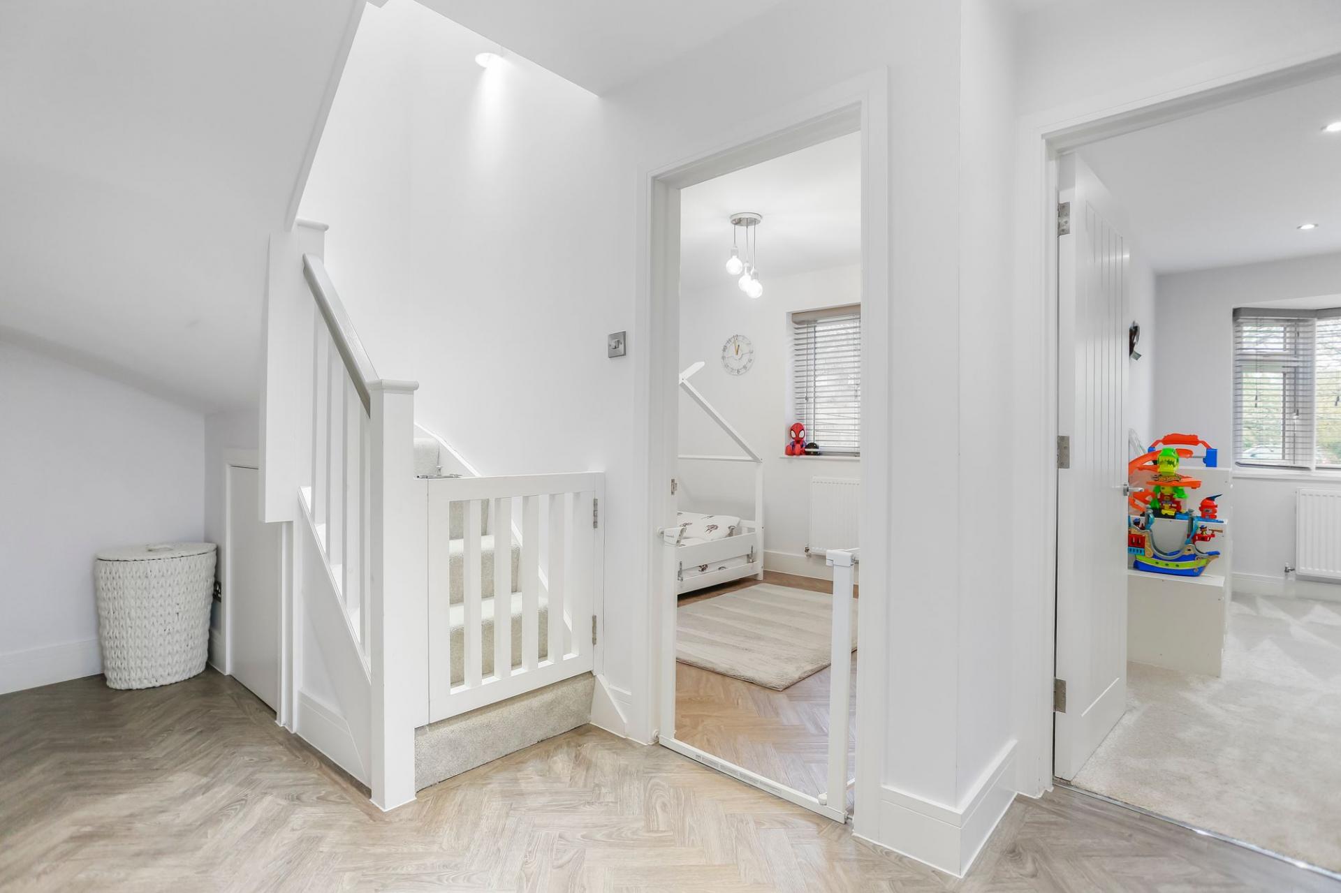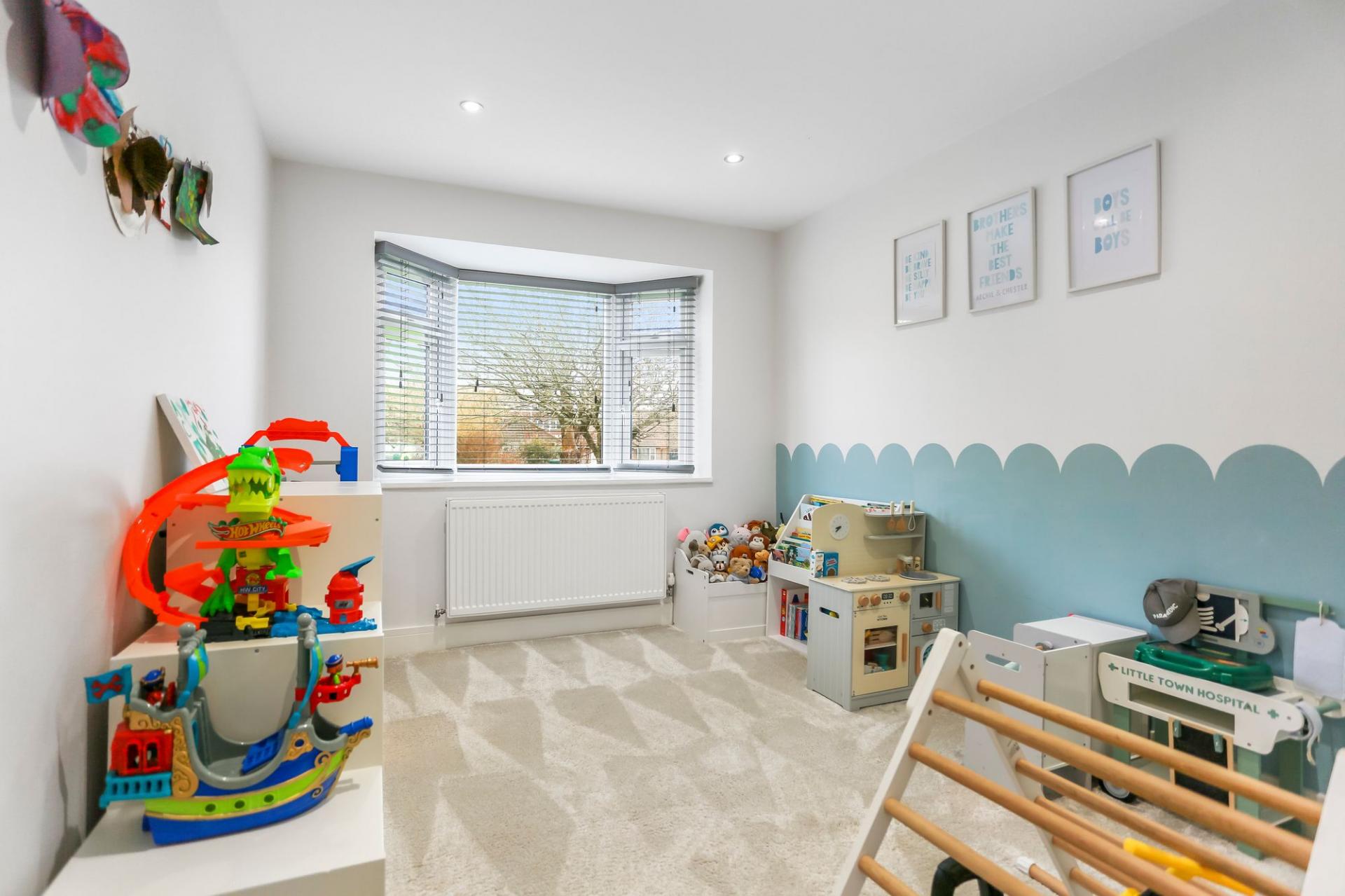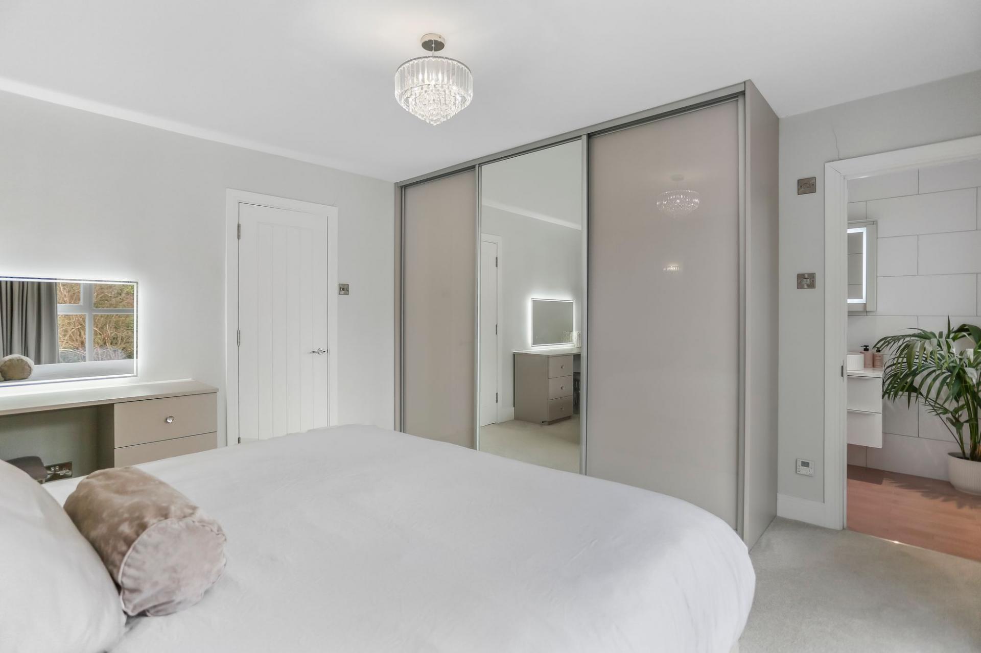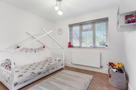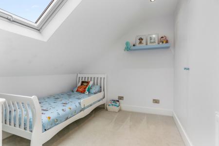 Upstairs, there are two further bedrooms, including a generous principal bedroom featuring fitted wardrobes and a built-in dressing table. A large window in the main bedroom, set within the dormer extension, fills the room with natural light and enjoys lovely views overlooking Greenleas Park. The principal bedroom also benefits from an en-suite shower room. The second upstairs bedroom is also a good size and includes built-in wardrobes.