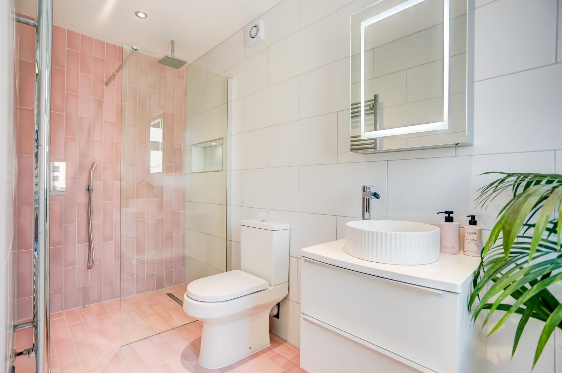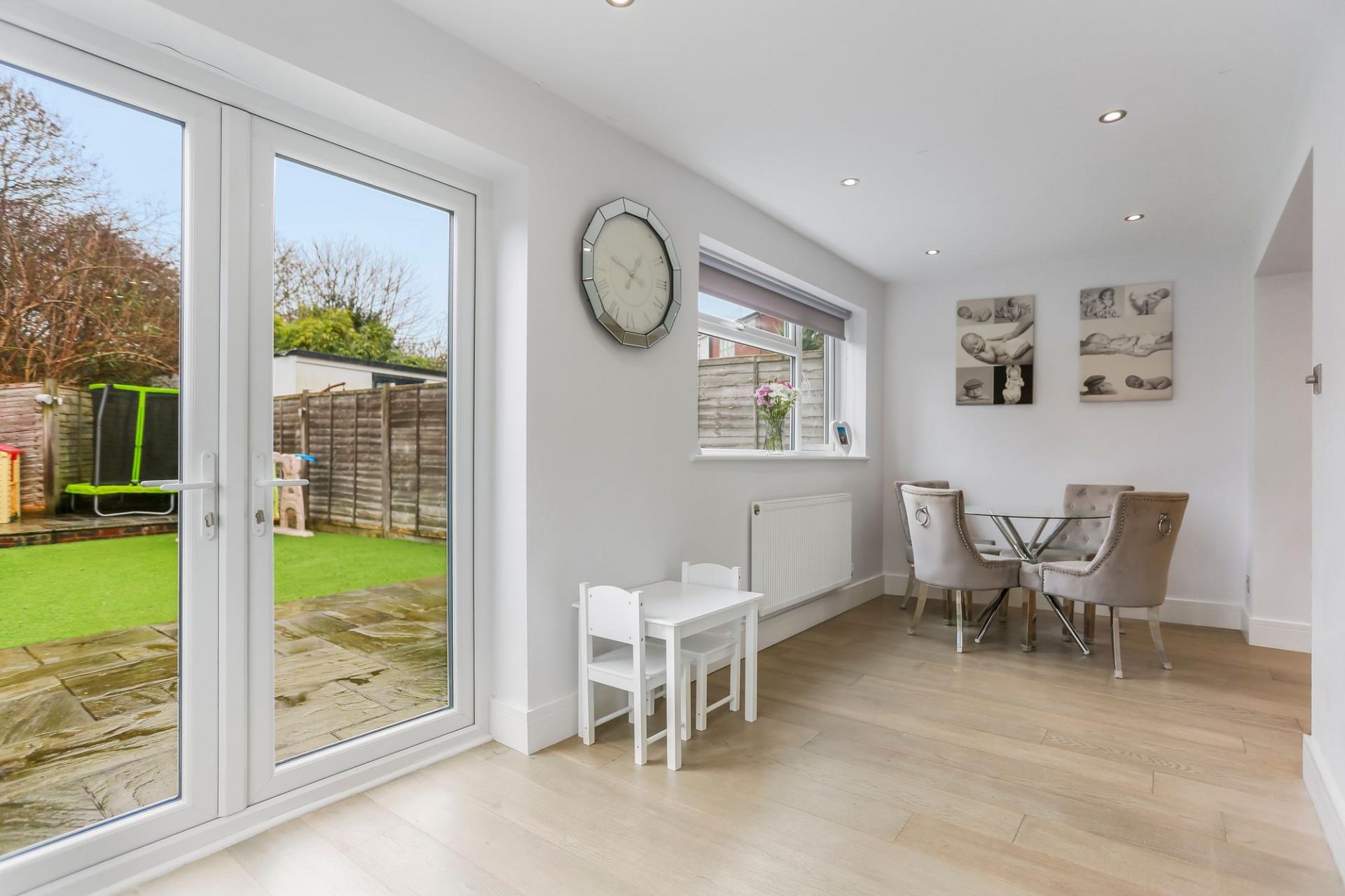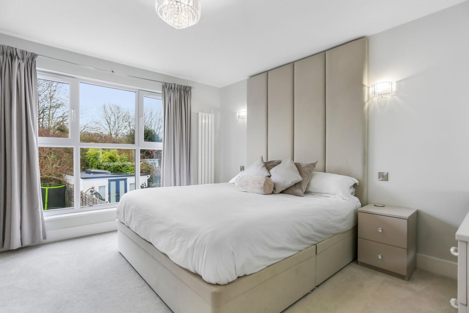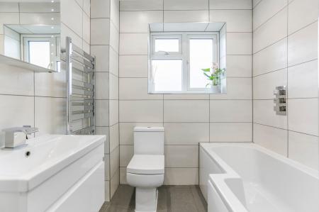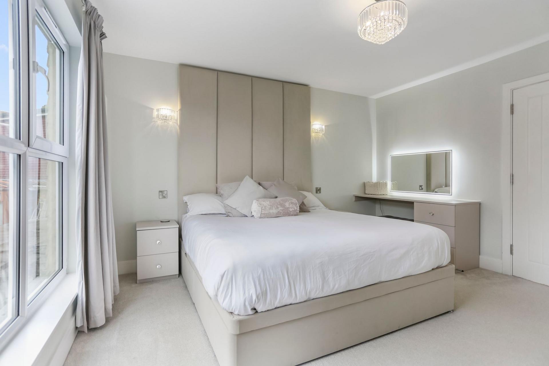 Upstairs, there are two further bedrooms, including a generous principal bedroom featuring fitted wardrobes and a built-in dressing table. A large window in the main bedroom, set within the dormer extension, fills the room with natural light and enjoys lovely views overlooking Greenleas Park. The principal bedroom also benefits from an en-suite shower room. The second upstairs bedroom is also a good size and includes built-in wardrobes.