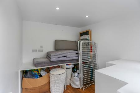The property offers excellent storage throughout, including built-in cupboards, useful eaves storage, and a separate utility room behind the garage. This versatile space is currently arranged as a utility/office, with several plug sockets, a radiator, and built-in desk and storage. It was previously used as a home office, making it ideal for anyone needing flexible work-from-home space.