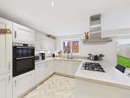 Introduction - This recently constructed and attractive detached house is ready to move straight into. Built by Lovell Homes, the property has been further enhanced by the current owner to create what is highly desirable home. The accommodation is depicted on the attached floorplan and briefly comprises a hallway, cloaks/W.C., separate lounge and a superb kitchen/dining/living space to the rear with plenty of units and appliances. There is also a utility room. Upstairs are four good sized bedrooms, the main of which has the benefit of an en-suite shower room. There is also a stylish family bathroom. The accommodation boasts gas fired central heating to radiators and uPVC double glazing. Other features include wardrobes, blinds, carpets and light fittings together with two sheds situated within the garden. A side drive provides parking for two vehicles.