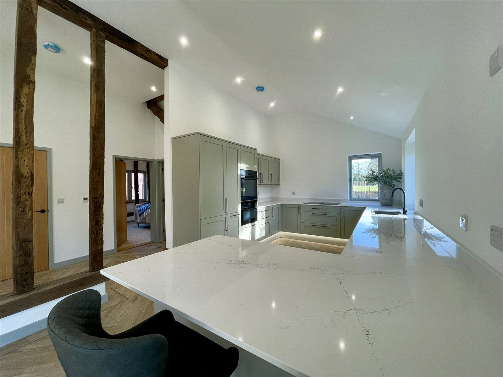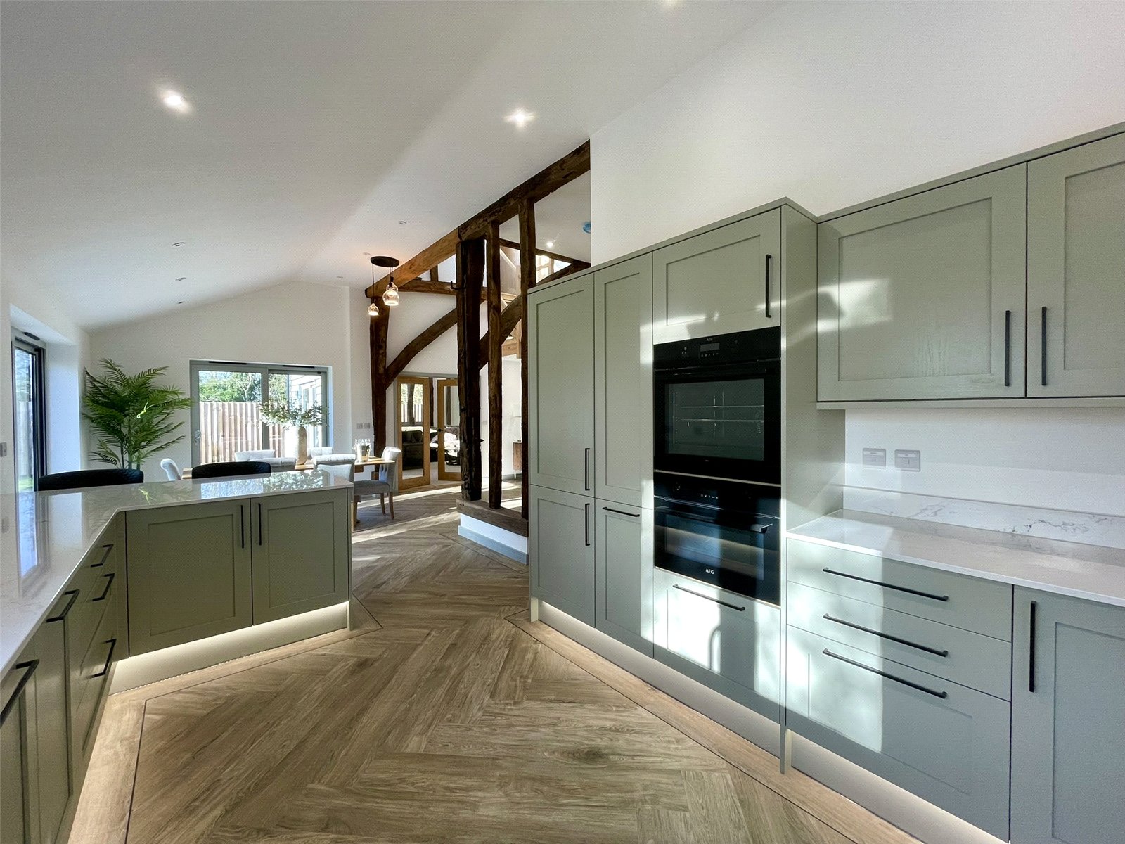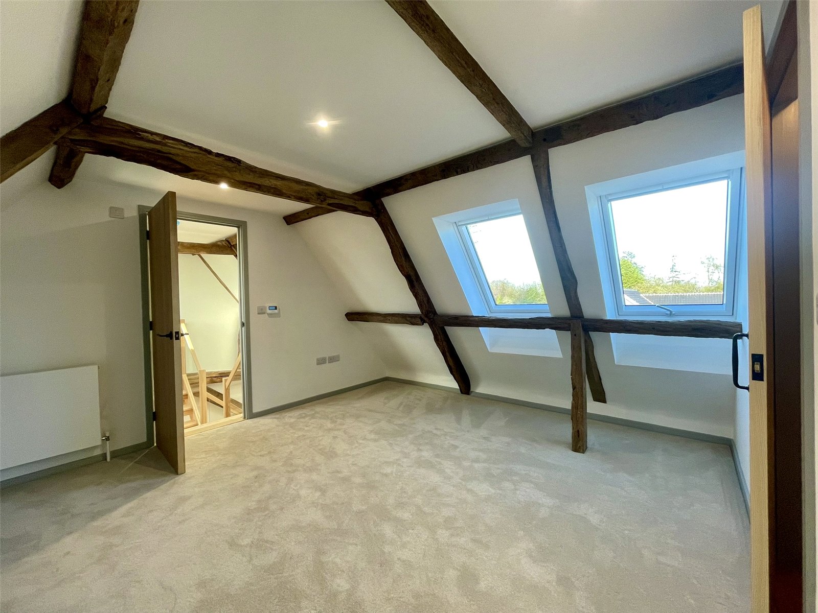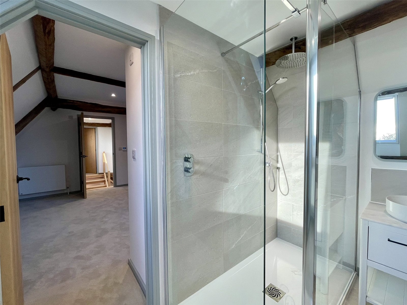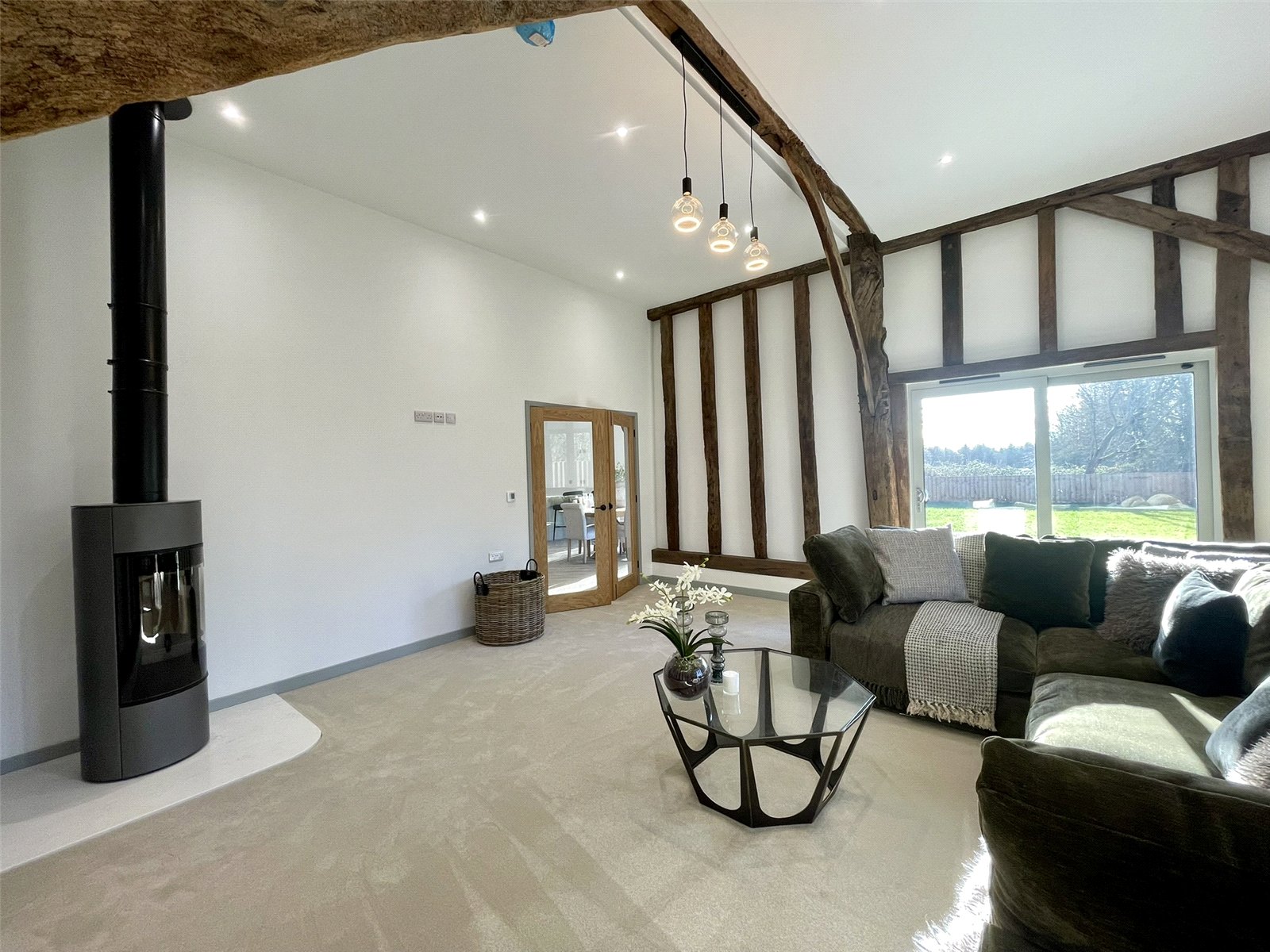 Constructed by a long established and respected local builder these individual properties are a rare opportunity to acquire small scale quality homes in a time of mass produced hurriedly built units. Time has been taken to complete each of the three different properties and this is clear from the quality of brickwork and internal finishes. Plot 2 has a remarkable story to tell and at first glance suggests it is a brand new property designed to appear as a timber frame barn type building. Whilst this is true to a point, it is not until stepping inside one sees the true character of what is in fact the reconstruction of an actual timber frame threshing barn with all the timber features one would expect. This particular building has Suffolk roots and was constructed originally in Walsham le Willows. Having been dismantled by the current owner and carefully stored for over thirty years, it was not until Covid struck that time was found to explore the possibility of re erecting the barn. Moved to Hoxne, the timber frame was painstakingly re erected and as one will see when visiting, the interior offers everything one would hope for in a classic timber barn conversion. This really is the best of both worlds having as it does all the benefits of a new home along with the timbered character, space and volume of a barn. The cathedral like entrance, now featuring a bespoke Ash staircase leads you in to flexible multi room space which includes ground and first floor bedroom options including four bath/shower rooms and light, airy and voluminous day space. Underfloor heating extends through the ground floor with radiators upstairs all powered from a tailor made Samsung air source heat pump. Thoughtful installation of sockets, switches and lighting adds to the day to day convenience. The design of the house has incorporated clever sight lines with glazed openings visible throughout the interior. The well appointed kitchen includes AEG appliances including induction hob with integrated down draught extraction, full size dishwasher and 72L & 40L ovens including microwave function. Likewise, bath and shower rooms include stylish fittings, washstand storage and touch sensor mirrors. Outside, similar attention to detail and time now shows us grass seeded lawn within close boarded fencing to the rear along with pathways and patios created from porcelain tiled surfaces. A detached double garage with additional parking space sits to one side.