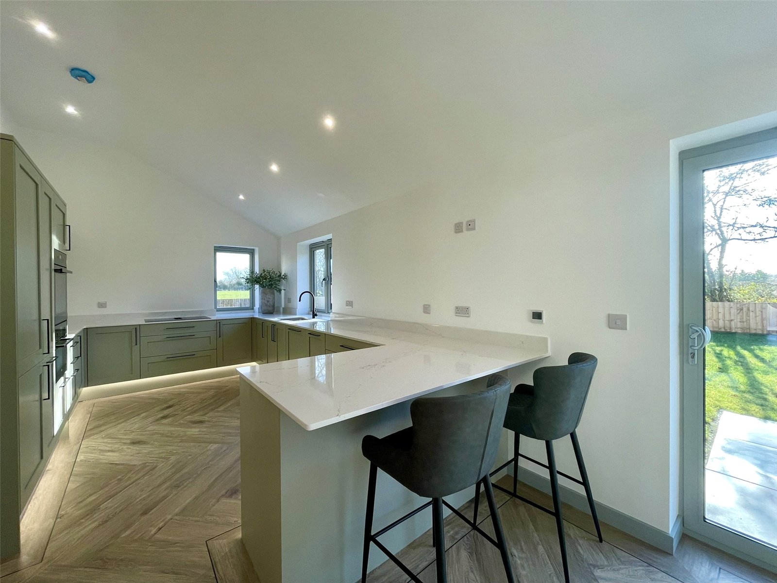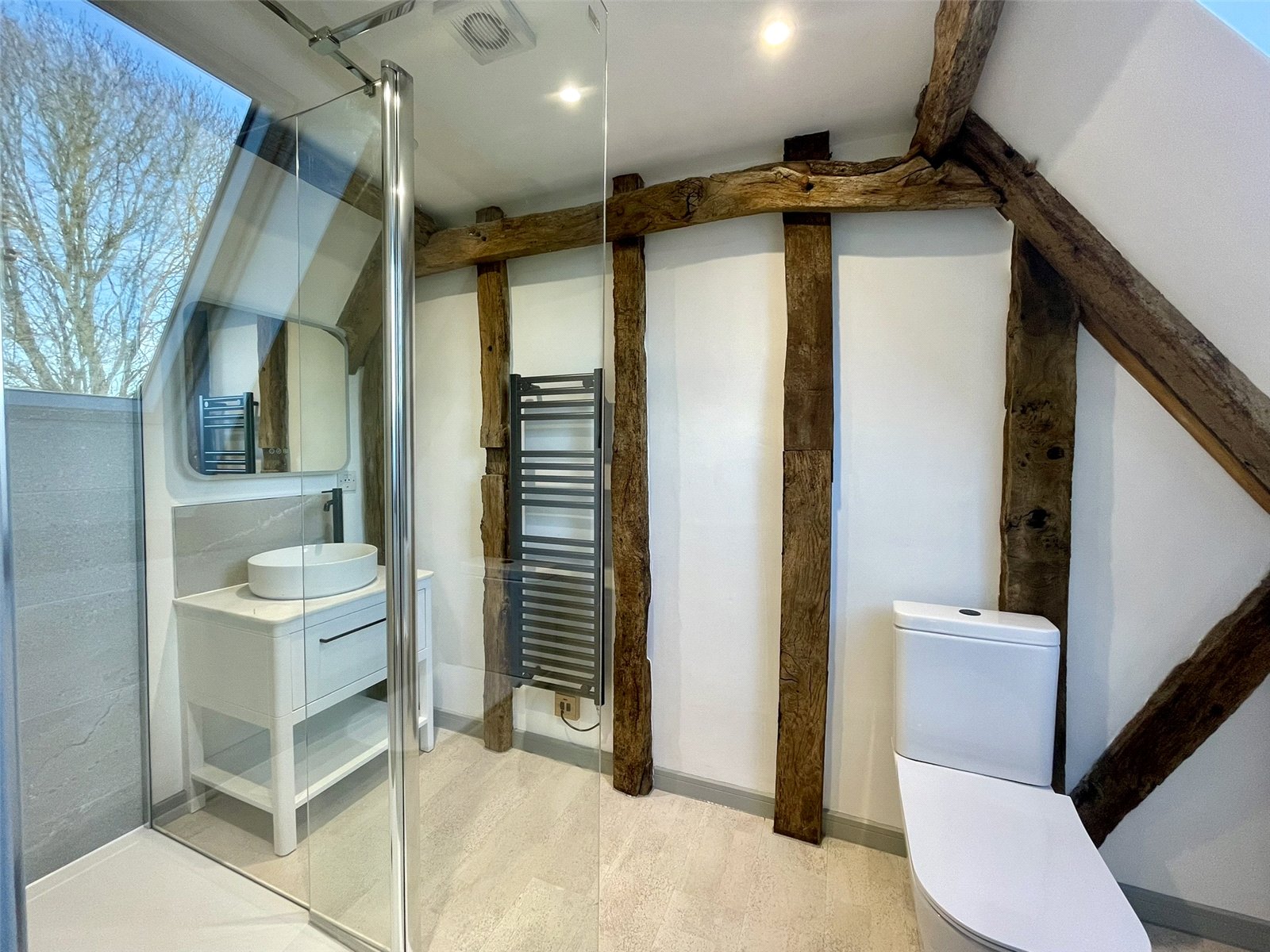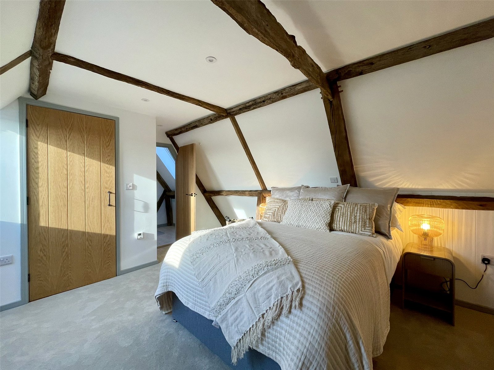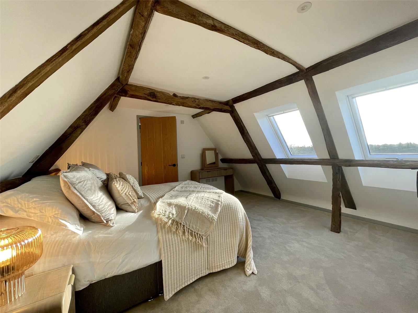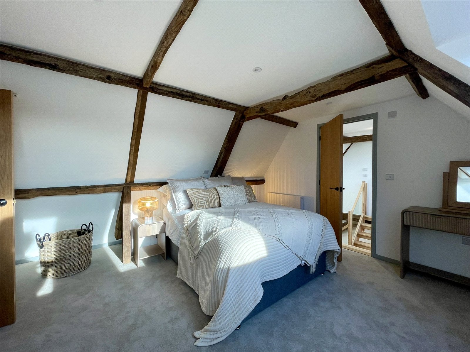 Constructed by a long established and respected local builder these individual properties are a rare opportunity to acquire small scale quality homes in a time of mass produced hurriedly built units. Time has been taken to complete each of the three different properties and this is clear from the quality of brickwork and internal finishes. Plot 2 has a remarkable story to tell and at first glance suggests it is a brand new property designed to appear as a timber frame barn type building. Whilst this is true to a point, it is not until stepping inside one sees the true character of what is in fact the reconstruction of an actual timber frame threshing barn with all the timber features one would expect. This particular building has Suffolk roots and was constructed originally in Walsham le Willows. Having been dismantled by the current owner and carefully stored for over thirty years, it was not until Covid struck that time was found to explore the possibility of re erecting the barn. Moved to Hoxne, the timber frame was painstakingly re erected and as one will see when visiting, the interior offers everything one would hope for in a classic timber barn conversion. This really is the best of both worlds having as it does all the benefits of a new home along with the timbered character, space and volume of a barn. The cathedral like entrance, now featuring a bespoke Ash staircase leads you in to flexible multi room space which includes ground and first floor bedroom options including four bath/shower rooms and light, airy and voluminous day space. Underfloor heating extends through the ground floor with radiators upstairs all powered from a tailor made Samsung air source heat pump. Thoughtful installation of sockets, switches and lighting adds to the day to day convenience. The design of the house has incorporated clever sight lines with glazed openings visible throughout the interior. The well appointed kitchen includes AEG appliances including induction hob with integrated down draught extraction, full size dishwasher and 72L & 40L ovens including microwave function. Likewise, bath and shower rooms include stylish fittings, washstand storage and touch sensor mirrors. Outside, similar attention to detail and time now shows us grass seeded lawn within close boarded fencing to the rear along with pathways and patios created from porcelain tiled surfaces. A detached double garage with additional parking space sits to one side.