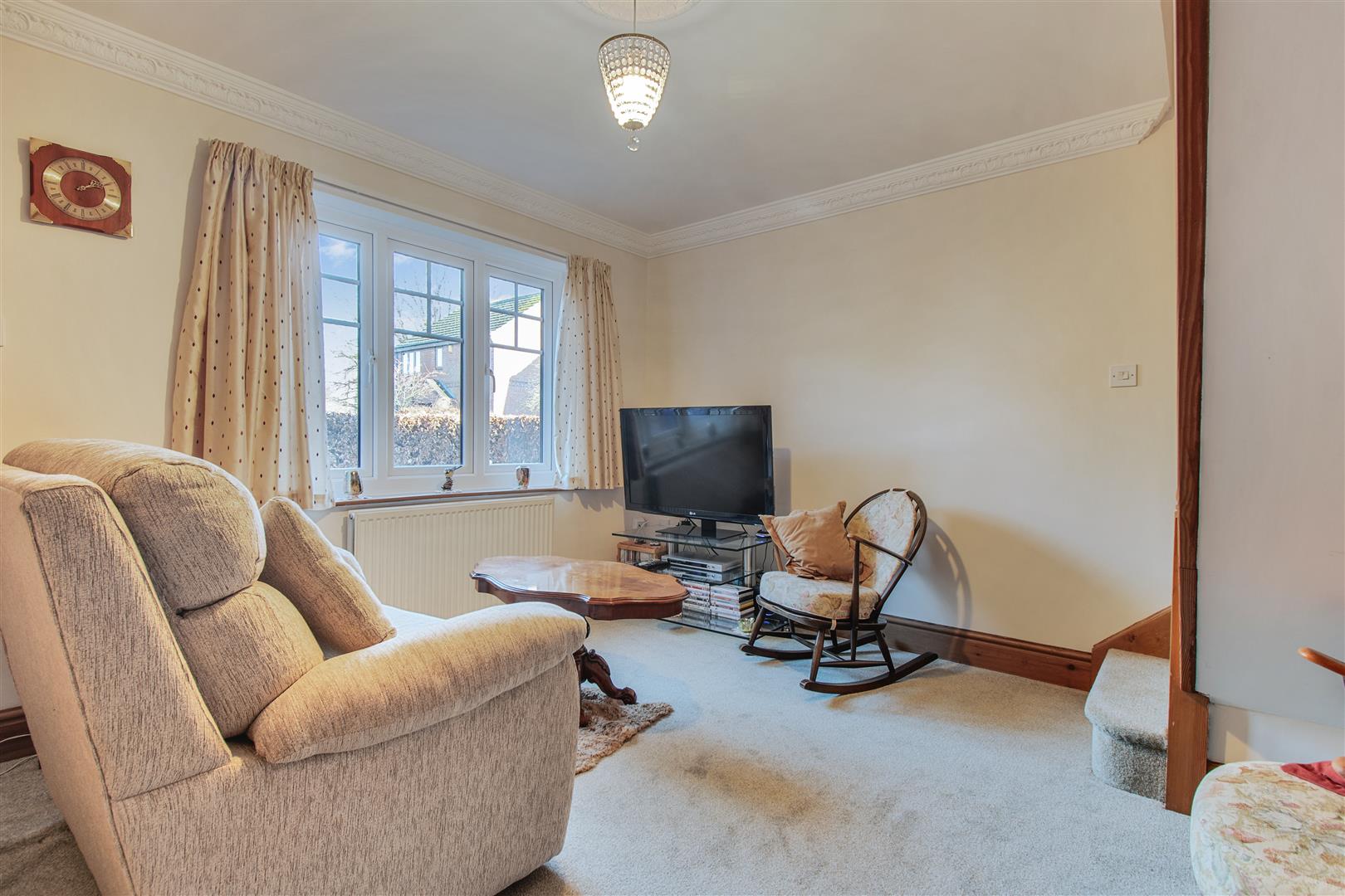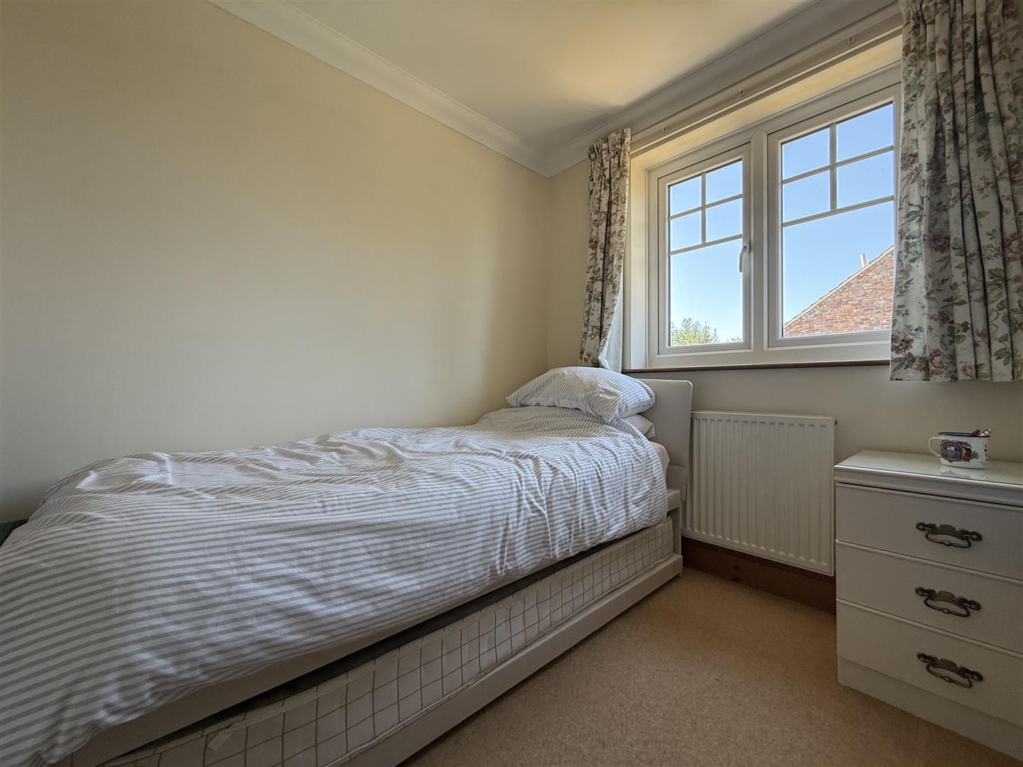 BEDROOM 2, rear outlook over the gardens. Shelved airing cupboard with water cylinder.