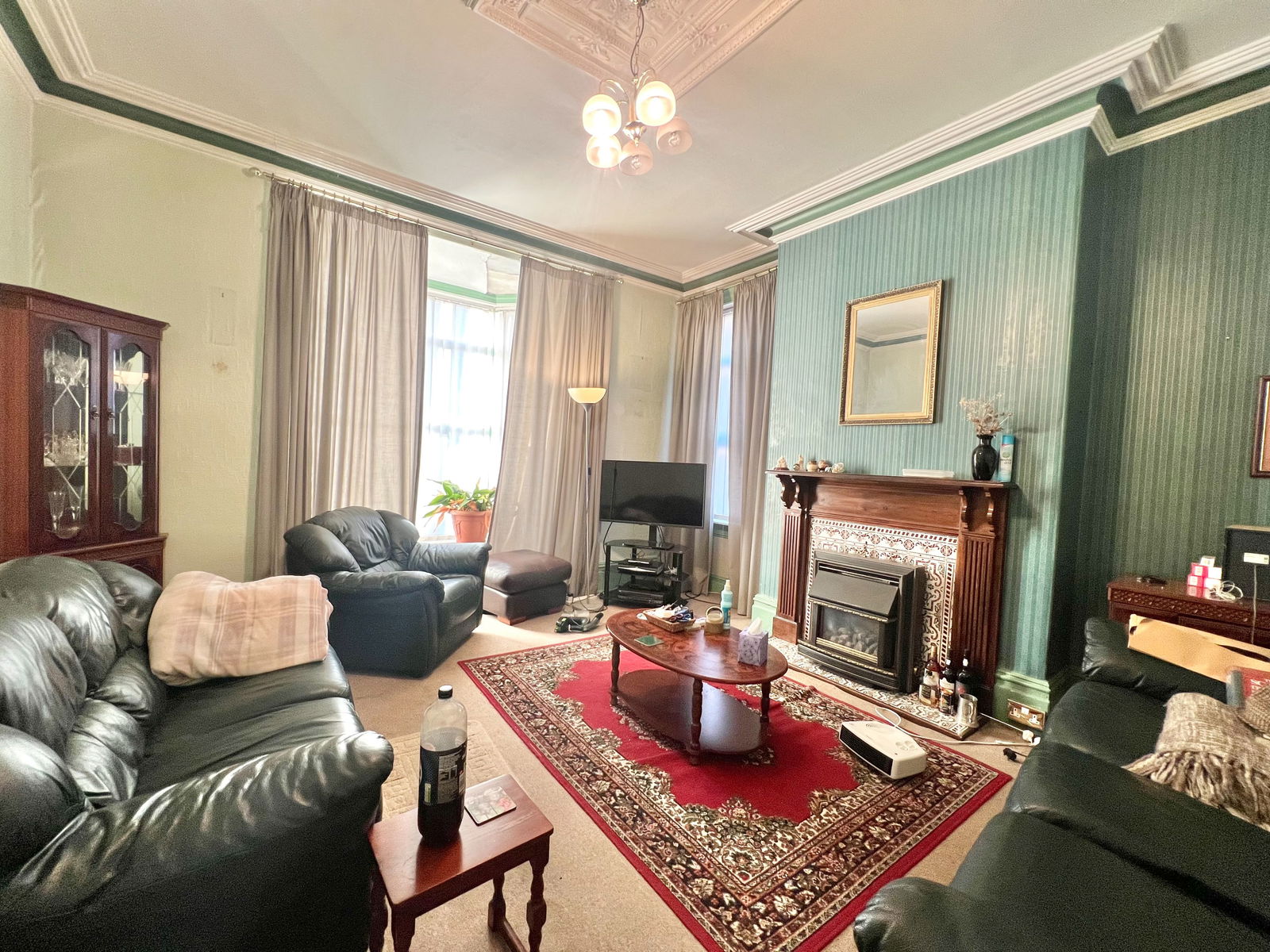 The lounge is a generously proportioned room located at the front of the property. It boasts beautiful ceiling coving, a charming gas fireplace, and a large bay window that fills the space with natural light. A side-facing double-glazed window and a central heating radiator add to the room’s appeal.