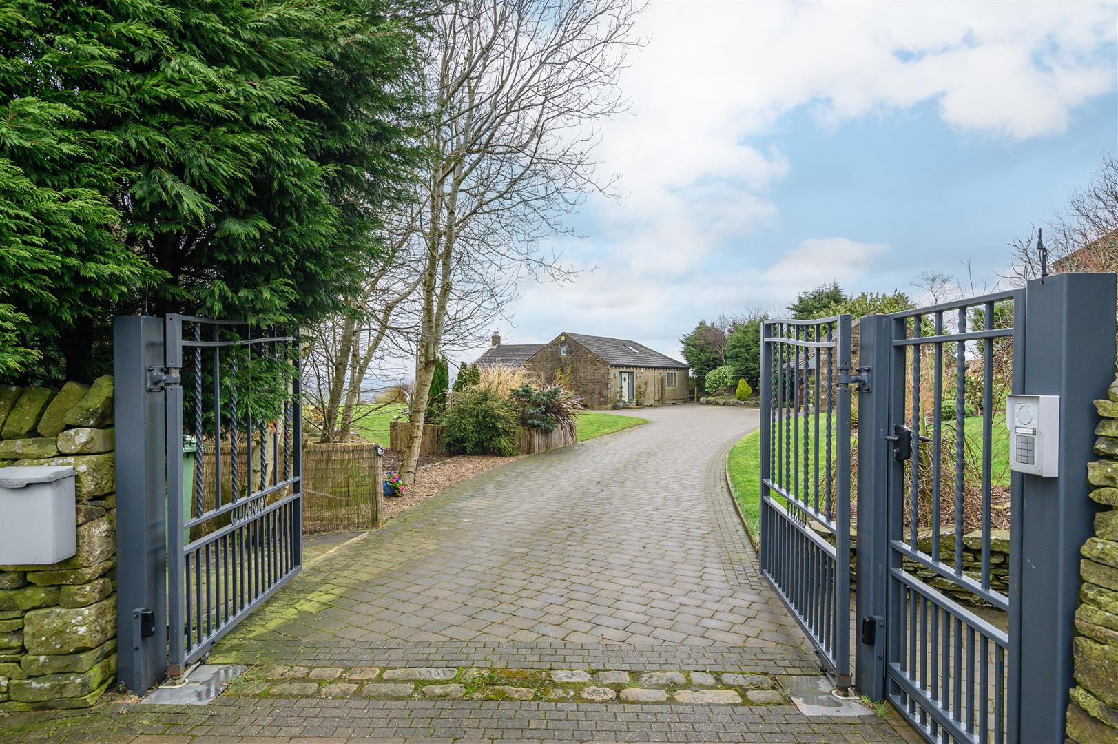 A gated block-paved driveway provides generous private parking and leads to the large garage. Beyond, beautifully landscaped gardens unfold to make the most of the extraordinary setting.