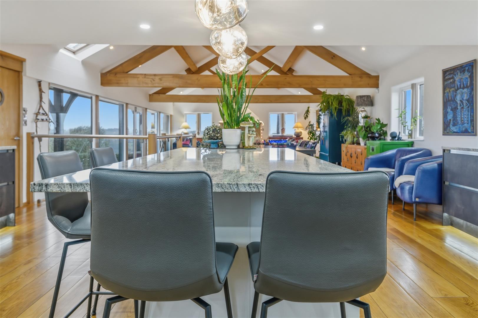 Arranged over multiple levels, the home has been carefully designed to maximise its spectacular outlook, with expansive glazing framing far-reaching views across rolling hills and open countryside. Inside, stylish finishes, warm natural materials, and high-specification fixtures create a home that feels both refined and welcoming.