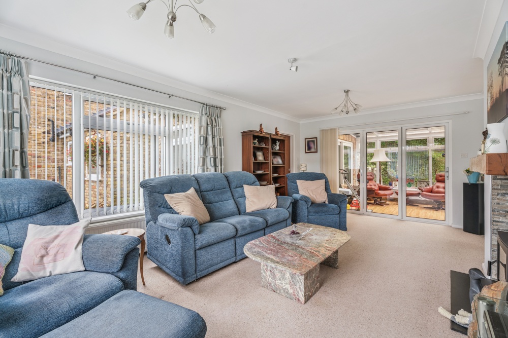 Accessed via a large porch into a welcoming entrance hall, the accommodation flows seamlessly with the first of four bathrooms off the hallway. A large, bright, double aspect sitting room benefits from a feature log burner with slate hearth and beamed mantle. Bi-fold doors lead to the conservatory to create further entertaining space and bring the outside in. The study/family room is just off the sitting room with both a front aspect and also sliding patio doors to the conservatory. A small wine cellar is accessed from here. This adaptable room makes a perfect home office or an ideal family room for kids.