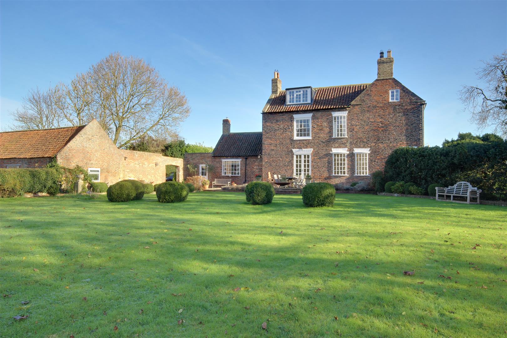 Introduction - A simply stunning detached Georgian residence set in grounds of around 1.2 acre in the popular Holderness village of Burstwick. Originally built in the late 18th century, the property is of historic and architectural interest having a prestigious Grade II listing. Beautifully appointed and immaculately presented, this delightful home is bursting with wonderful period features complimented by the luxuries of modern living. With high ceilings, elegant room sizes, gorgeous staircase and so much more, viewing is a must to appreciate the appeal of this fine residence. The accommodation extends to nearly 4,000sq.ft. and is arranged over three floors plus there is also a cellar. The layout is depicted on the attached floorplan and provides much versatility being ideal for the growing family. Features include a welcoming entrance reception with stunning staircase, three outstanding reception room plus a fabulous orangery linking into the modern kitchen complete with island and AGA. Practicalities are covered with a well fitted utility/boot room and a cloaks/W.C.. There are five bedrooms across the two upper floors served by three bath/shower rooms plus a separate office which has lovely views across adjacent farmland. The property occupies a mature site of around 1.2 acre on the fringe of Burstwick village and enjoys a largely west facing aspect to the main garden with farmland beyond. A sweeping driveway leads to both the front and rear of the house with a former barn providing undercover parking, workshop and storage facilities. In all, one of the most attractive properties to come on the market in recent times.