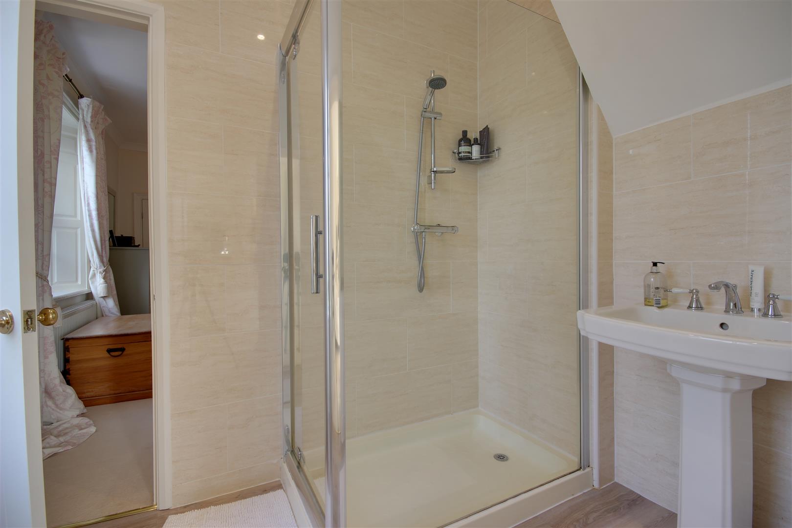 En-Suite Shower Room - With shower cubicle, pedestal wash hand basin, window to the west. Further internal door providing access to bedroom 2.