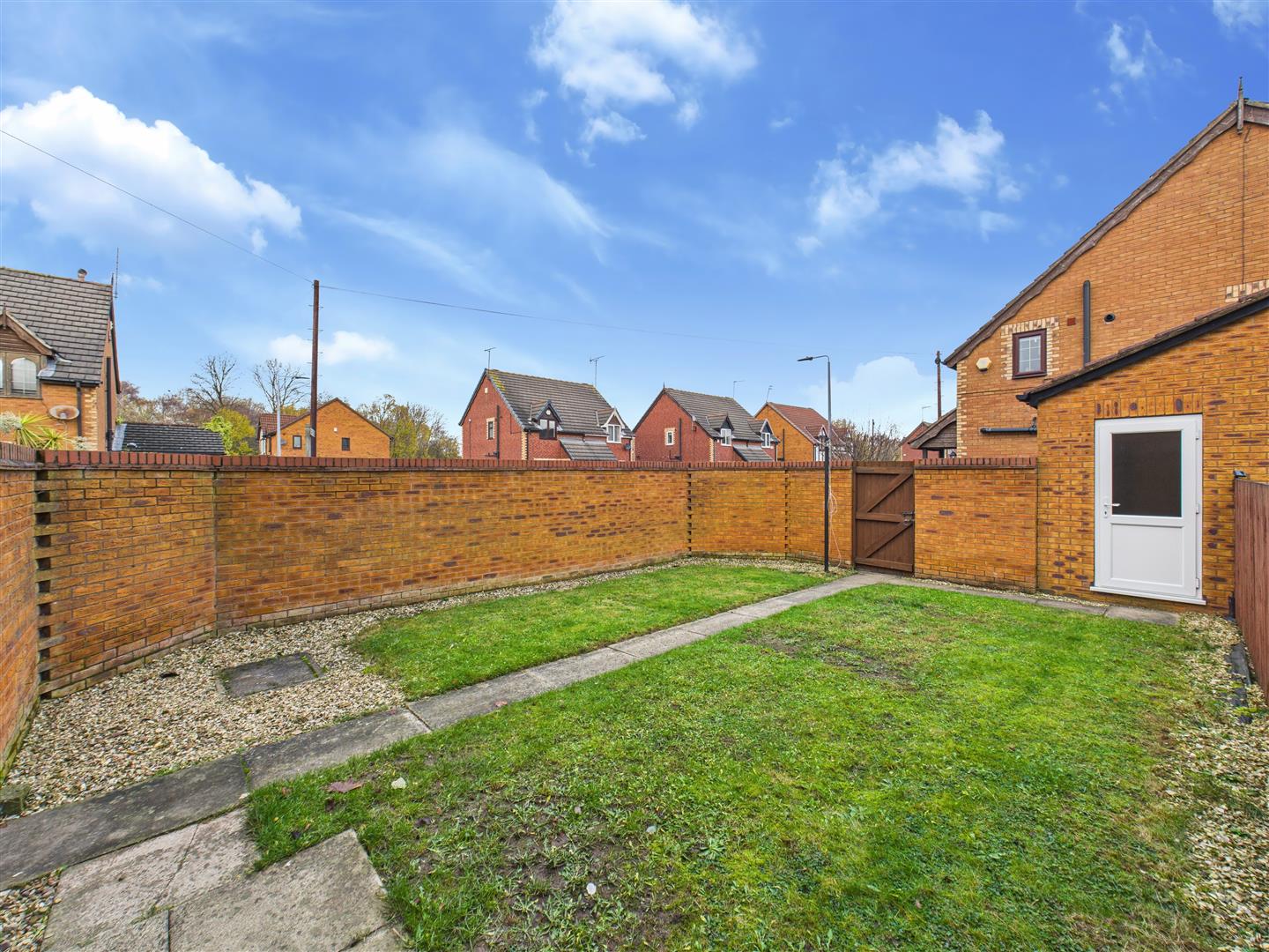 Outside - The walled and pleasant rear garden can be accessed directly from the kitchen or the driveway, and features a paved patio to the immediate rear of the property followed by a lawn. A path through the centre leads to a door to the garage. The driveway to the garage door presents comfortable off-street parking for one vehicle, with further on-street parking available. There are two small areas of lawn to the front of the property, with a path leading to the entrance.