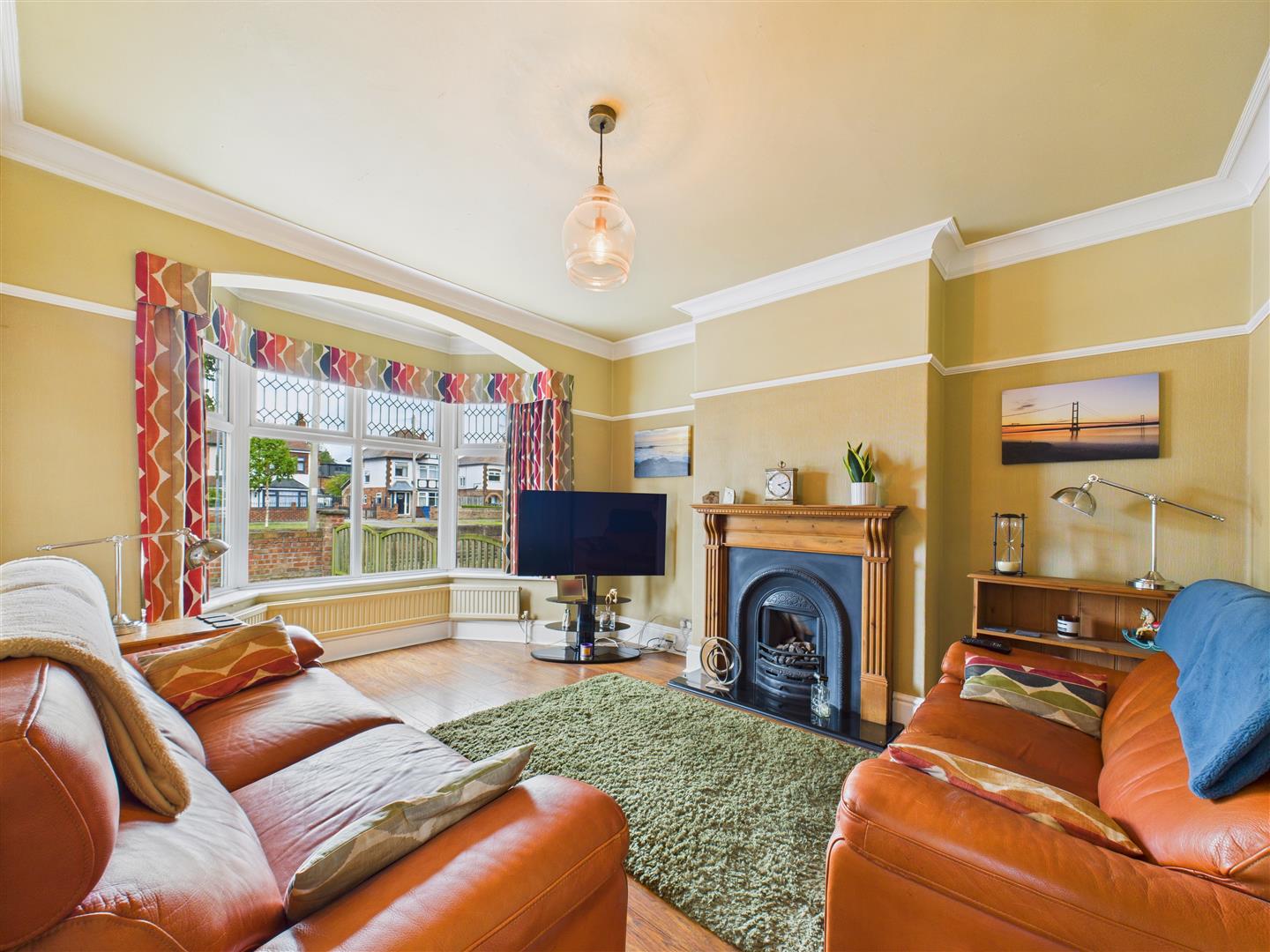 Lounge - Featuring a fireplace with cast insert and living flame gas fire. Window to the front elevation.
