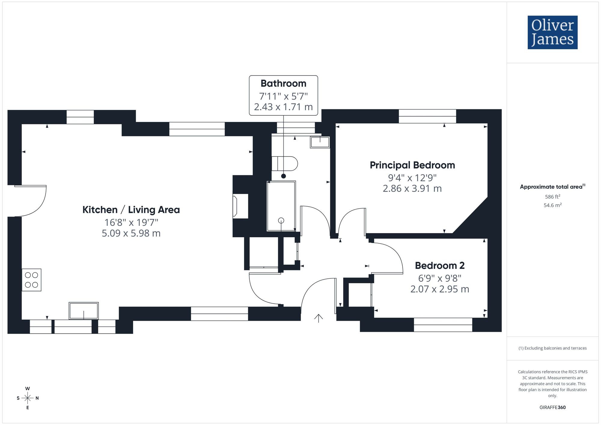 - The Gross Internal Floor Area is approximately 586 sq.ft / 54 sq.metres.