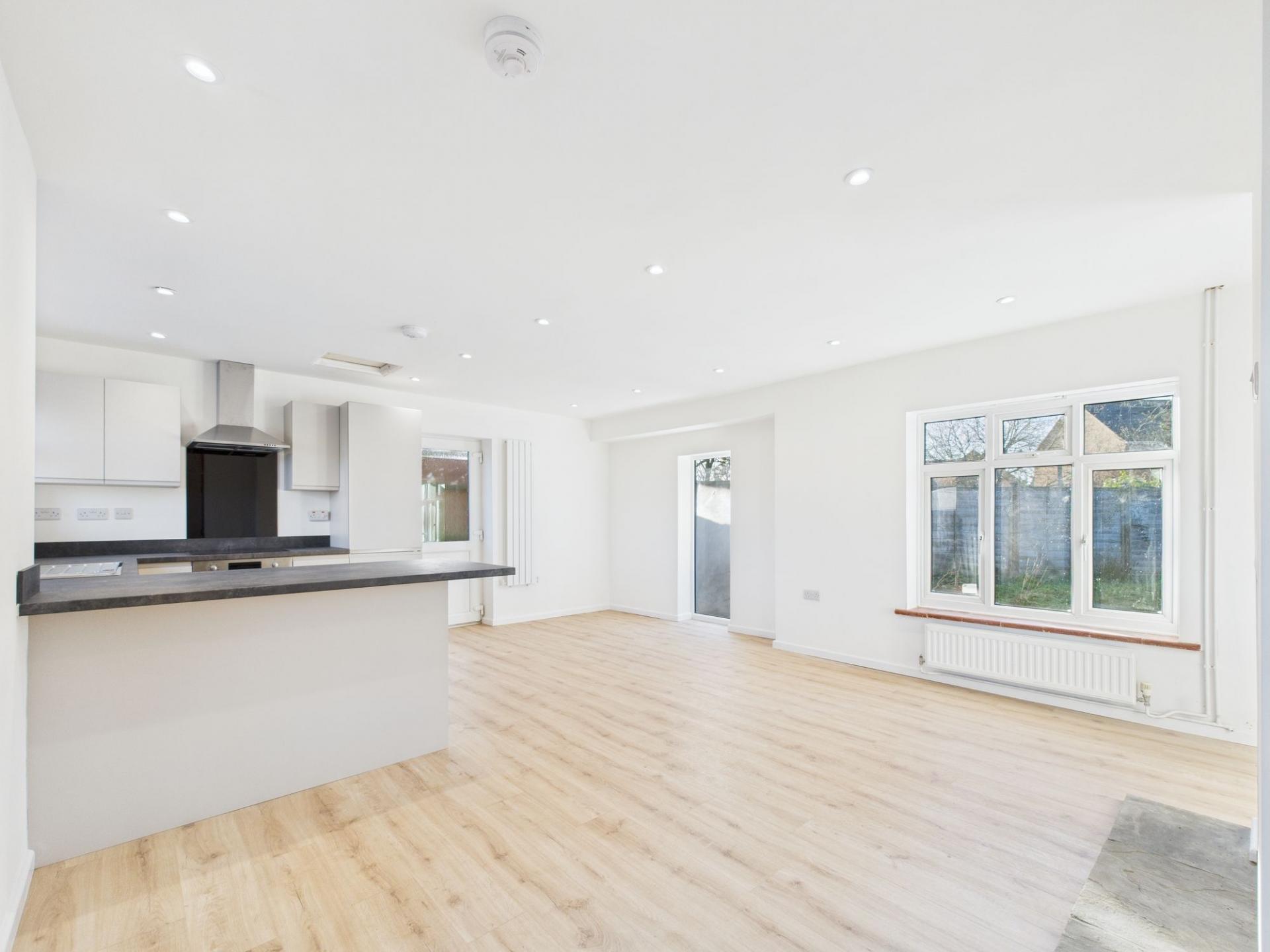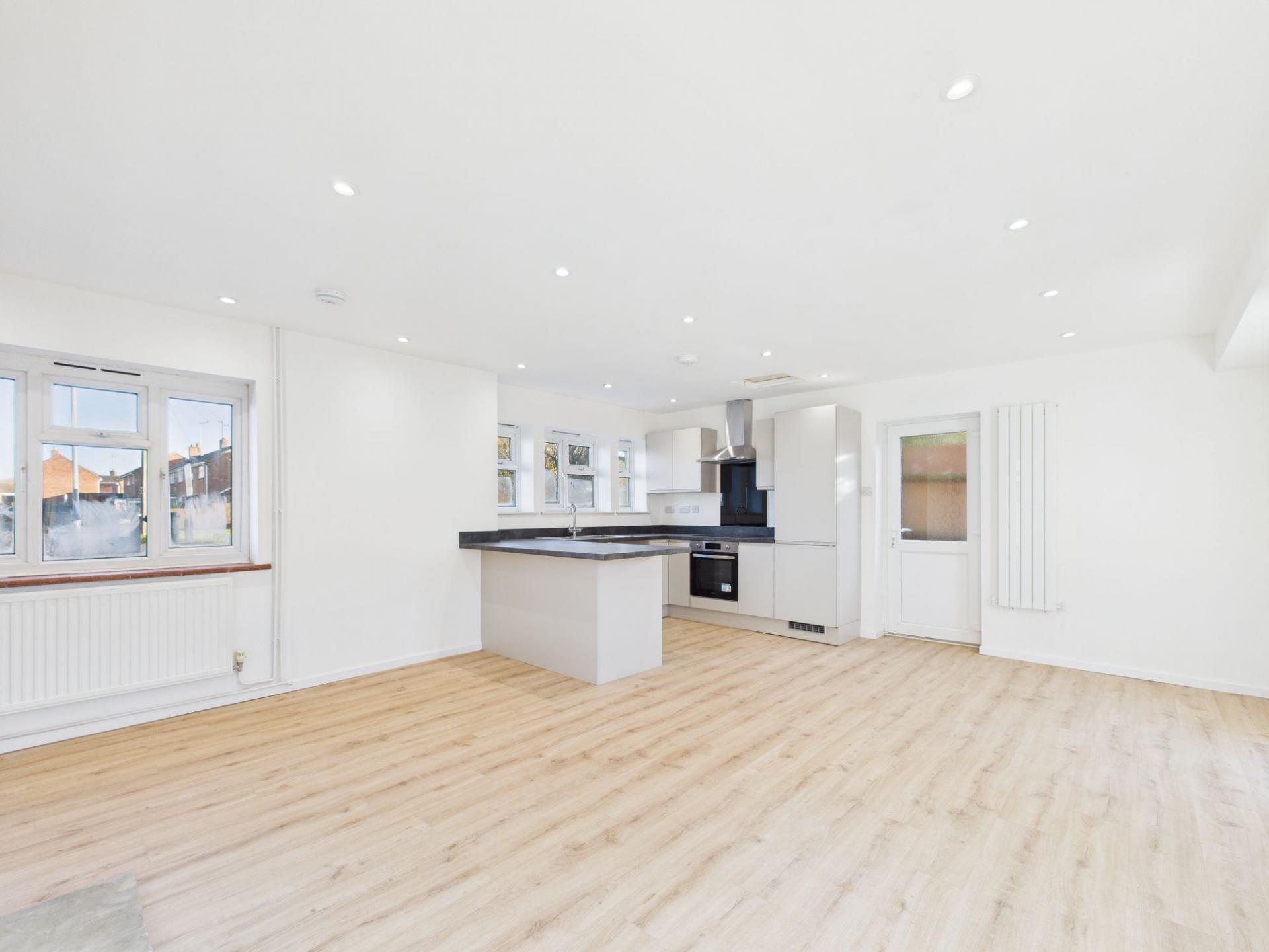 - Reconfigured open plan kitchen / living room.