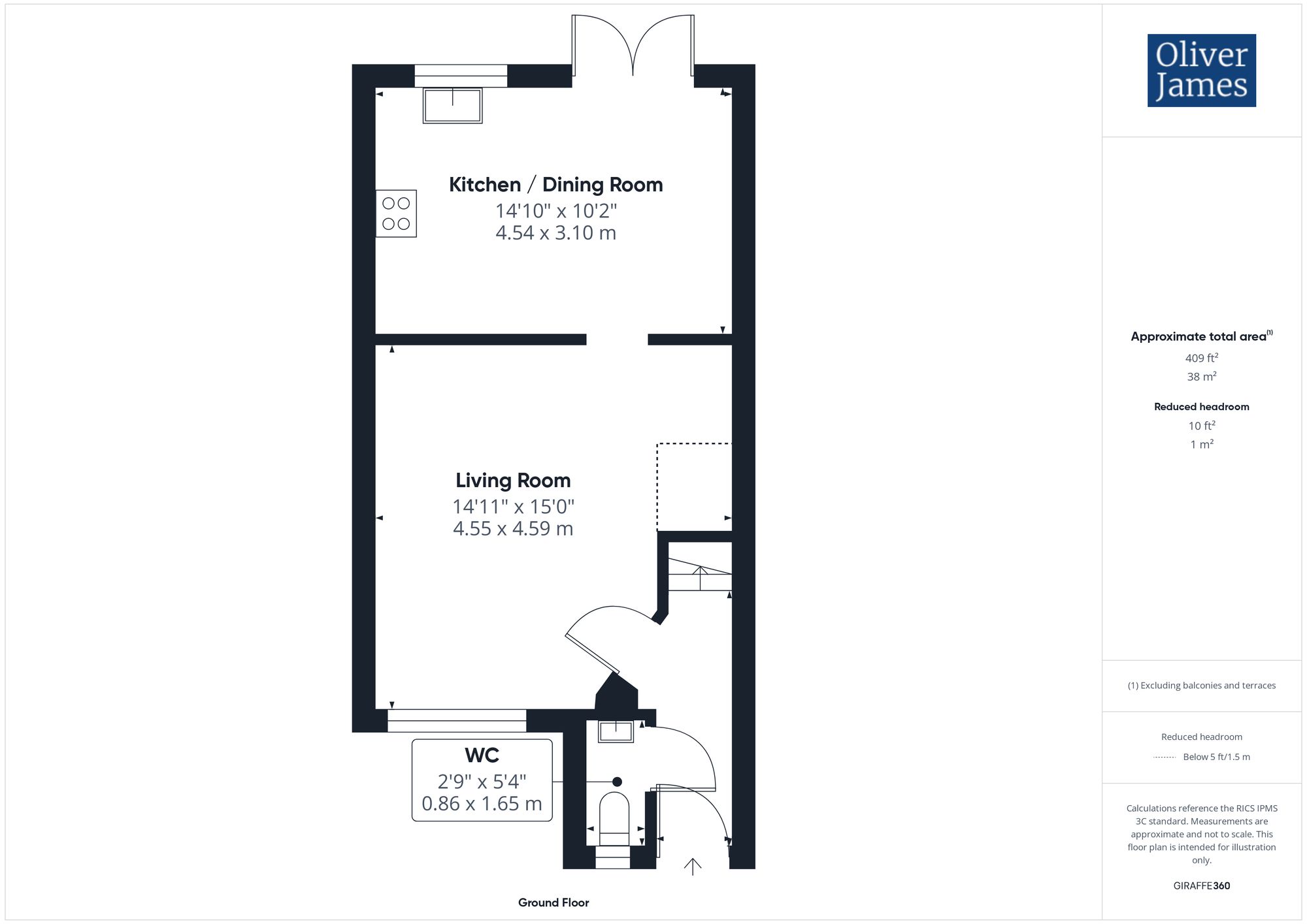 - The Gross Internal Floor Area is approximately 796 sq.ft / 74 sq.metres.