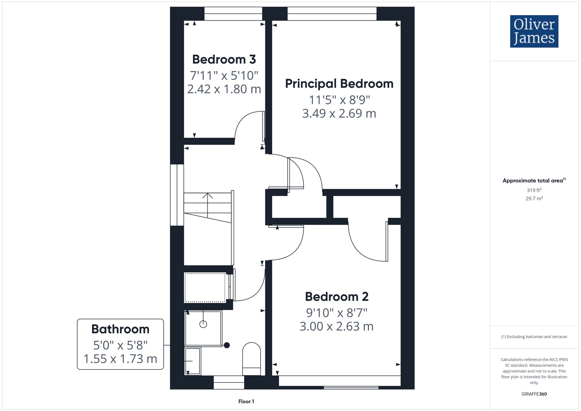 - 3 bedrooms / 1 reception room / 1 bathroom.